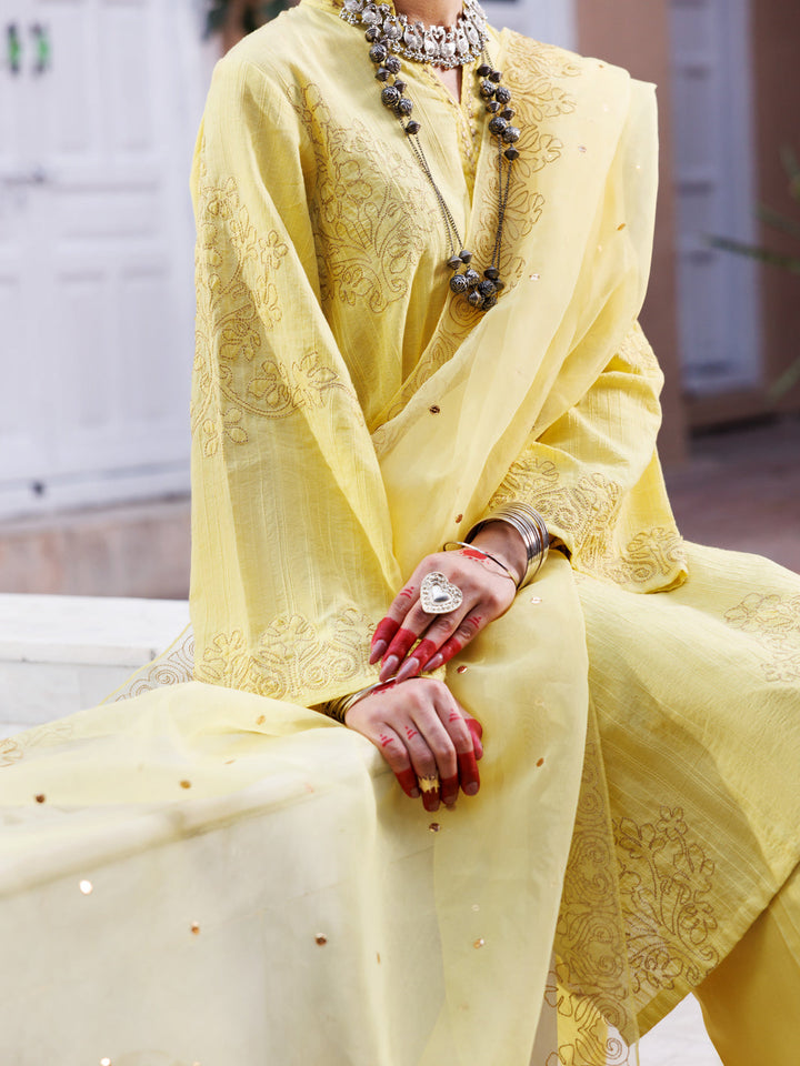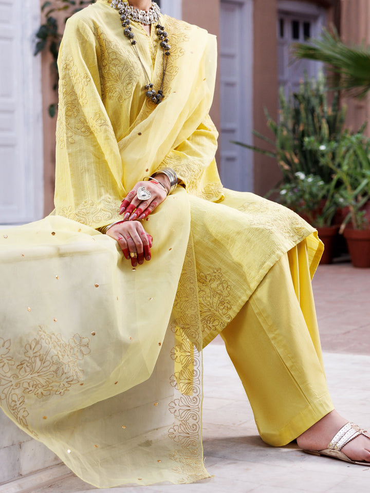 Yellow Dobby Jacquard 3Pc Unstitched - ALP-3PS-1952