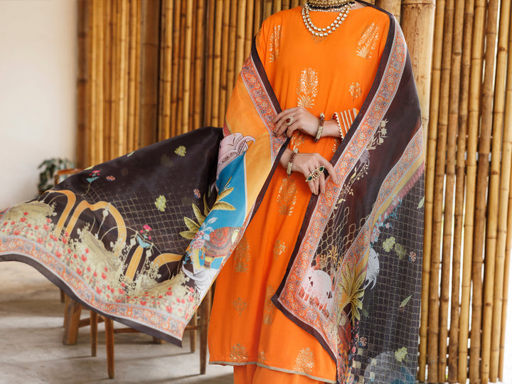 Orange Viscose 3Pc Unstitched - ALP-3PS-2041