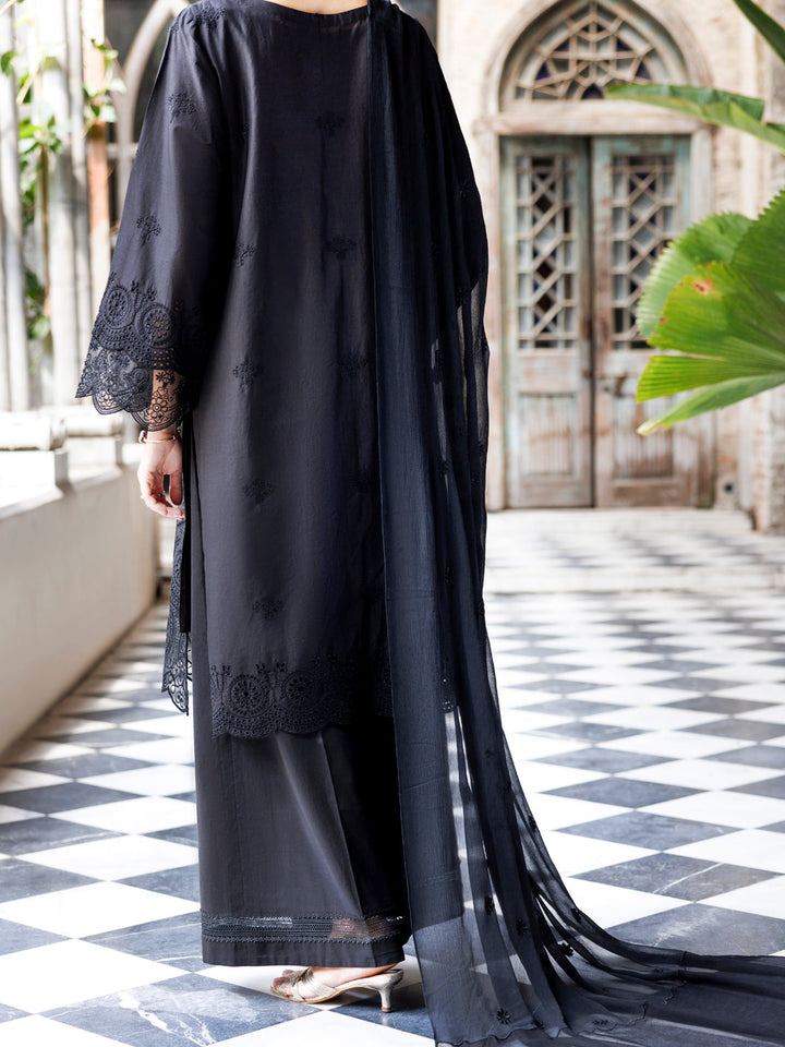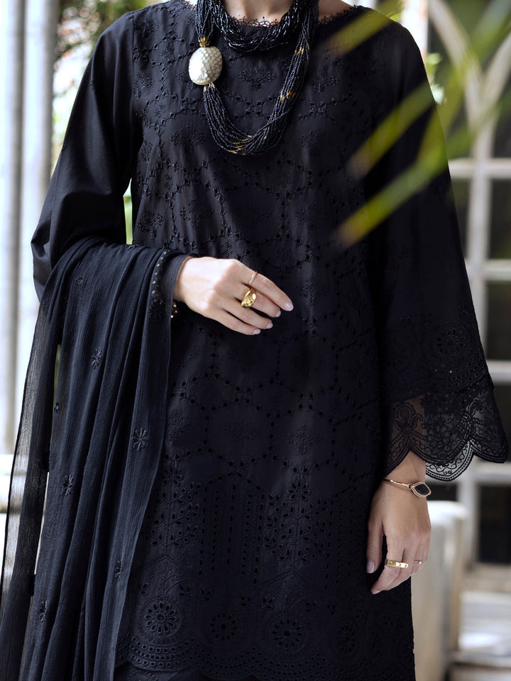 Black Schiffli Lawn 3Pc Unstitched - ALP-3PS-2111