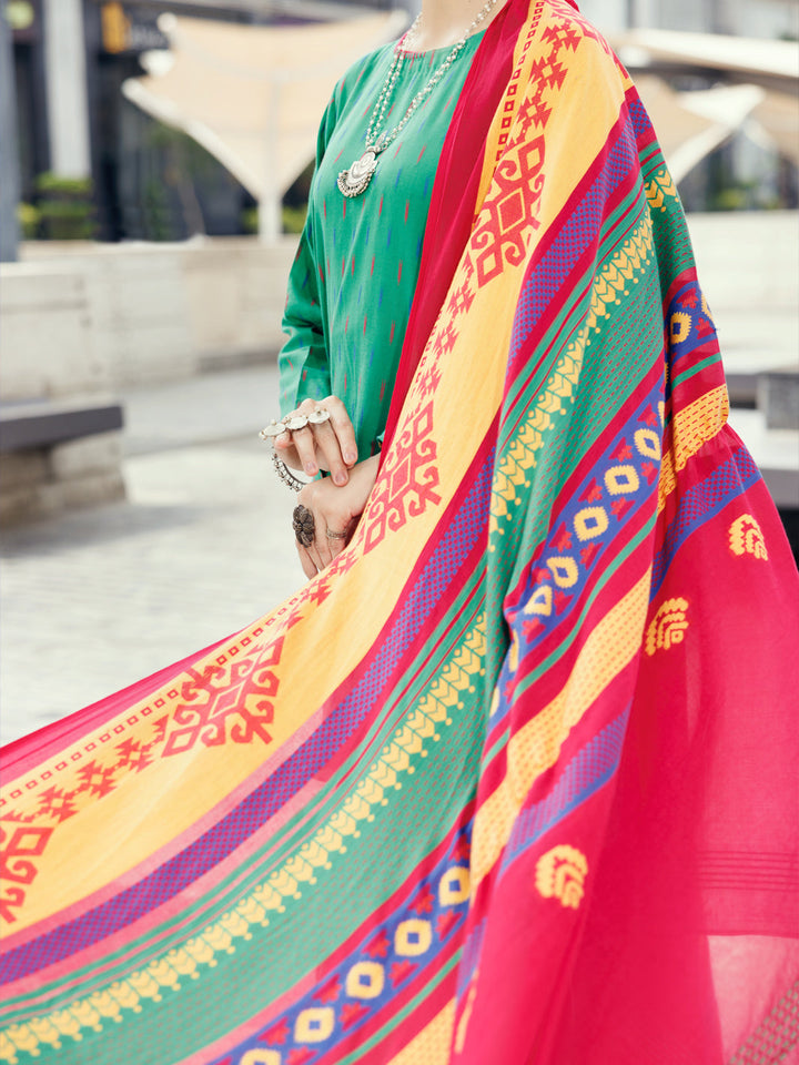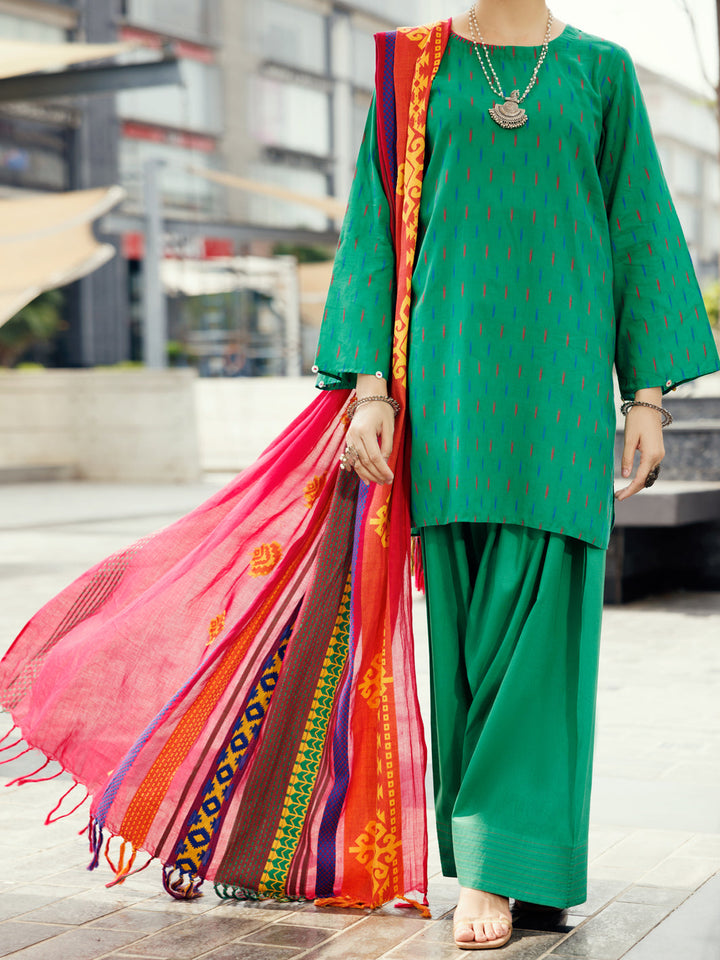 Green Yarn Dyed 3Pc Unstitched - ALP-3PS-2156