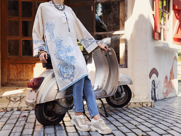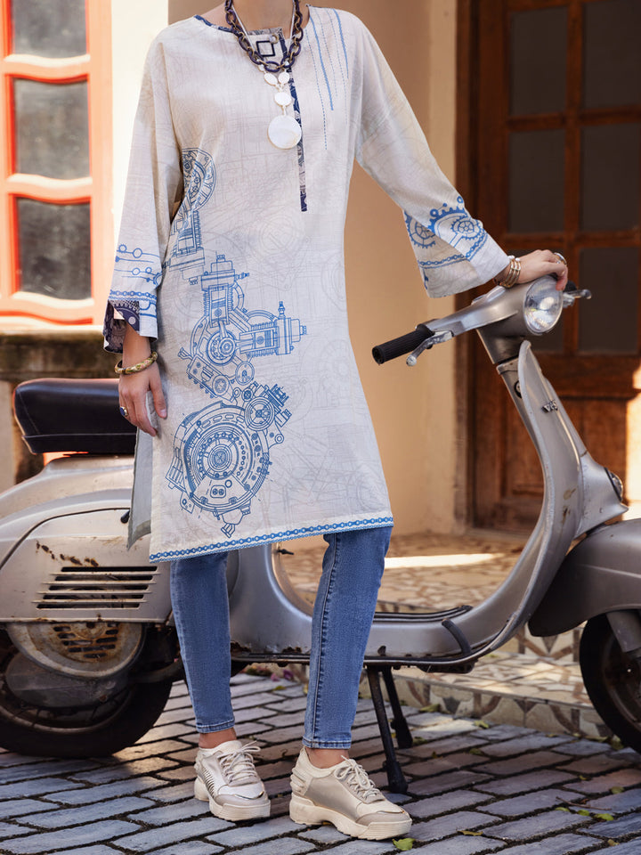 Loose Fit Digital Printed Kurti, With Details On Neckline And Sleeves Having Cuff With Slit.