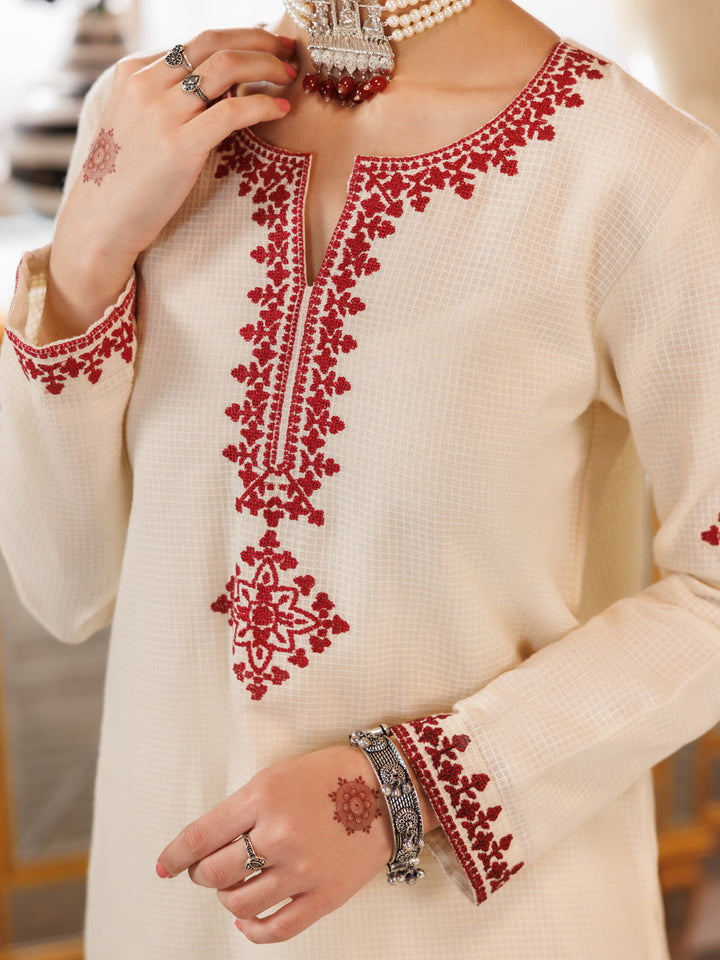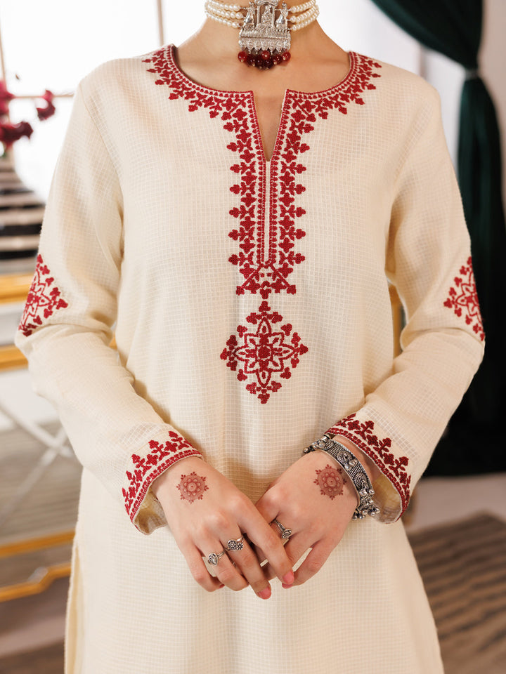 Off White Cotton Square 2 Piece Stitched - ALT-2PS-LKS-1163