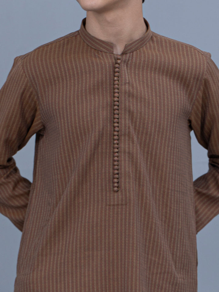 Yarn-Dyed Kurta With Fabric Loop Buttons And Wooden Button Details On The Sleeves