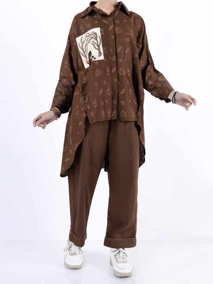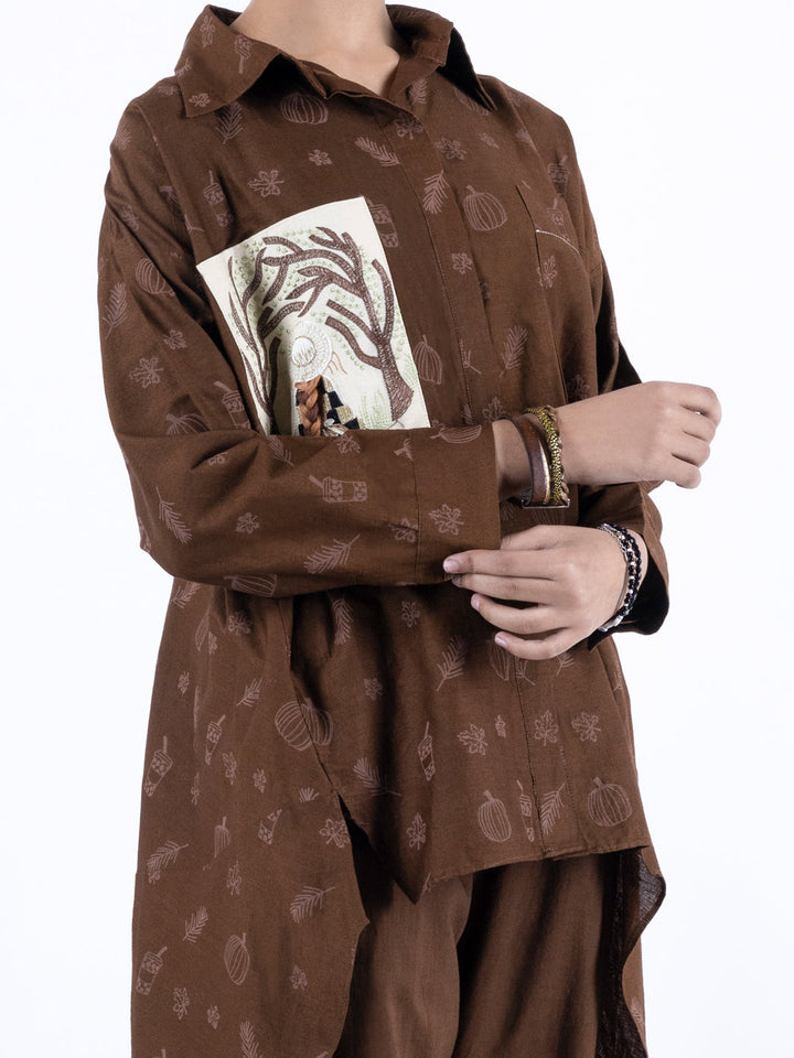 Dark Brown Cambric Kurti - ALT-LK-1098