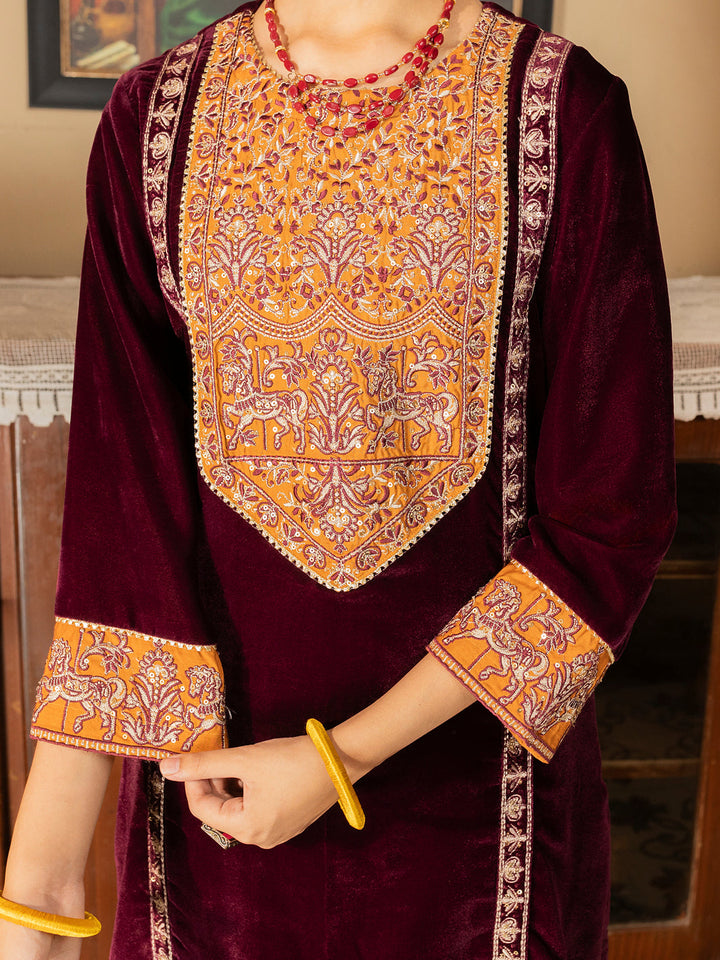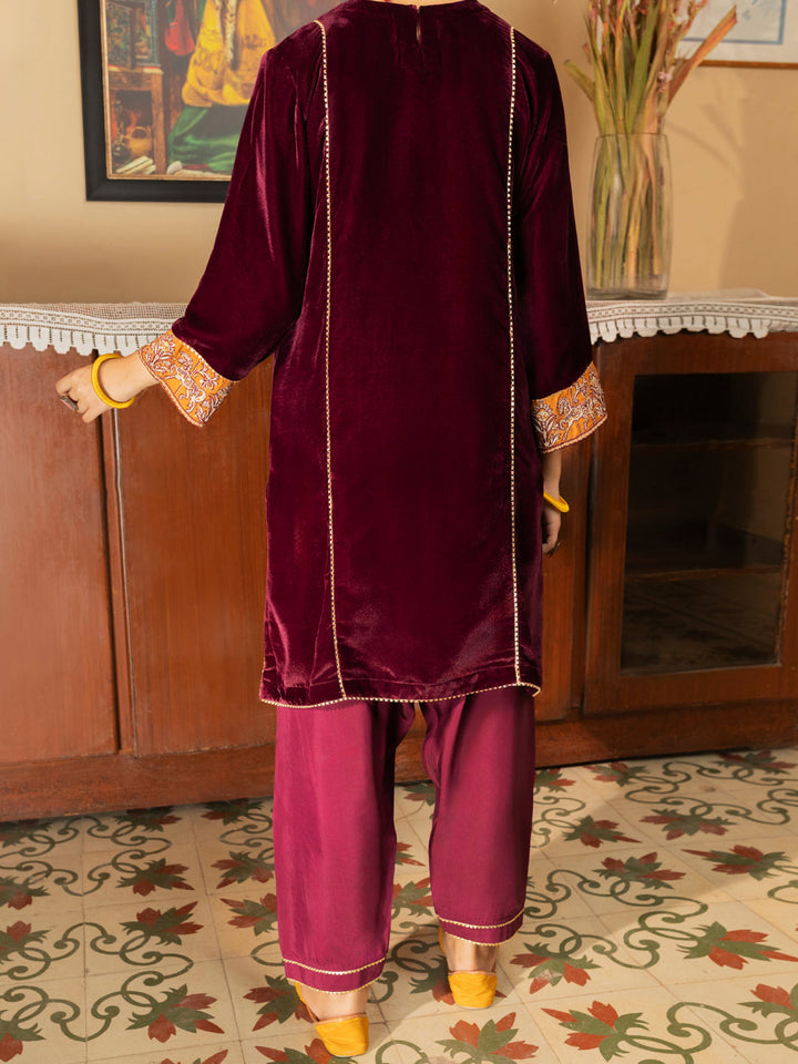 Maroon Velvet 2 Piece Stitched - ALT-LS-LKS-1141