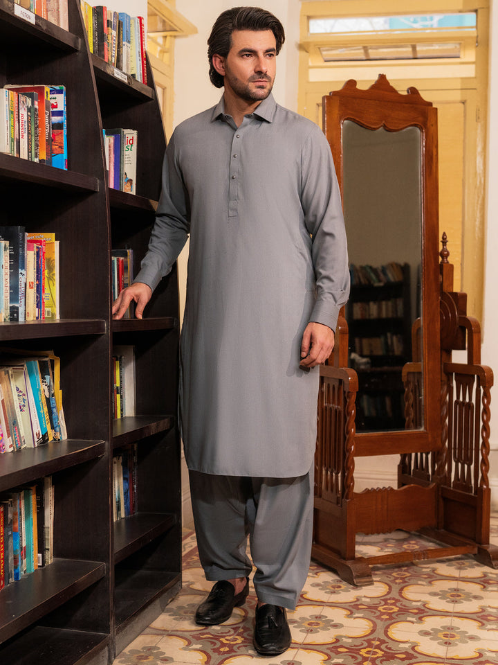 Grey Blended Kameez Shalwar - ALWA-KS-531