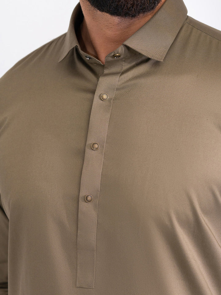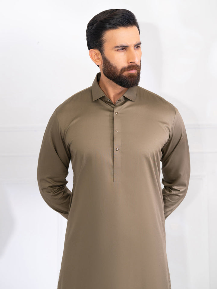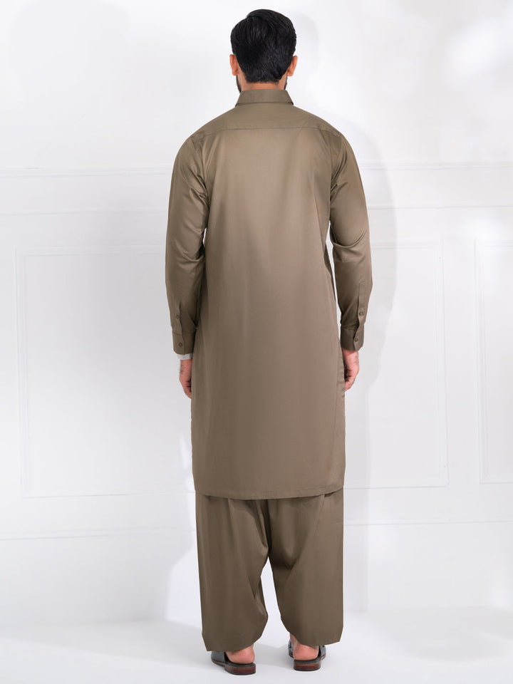 Olive Green Cotton Kameez Shalwar - ALWA-KS-537