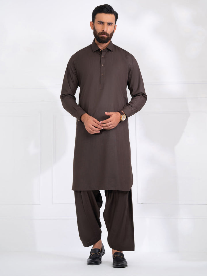 Dark Brown Blended Kameez Shalwar - ALWA-KS-558