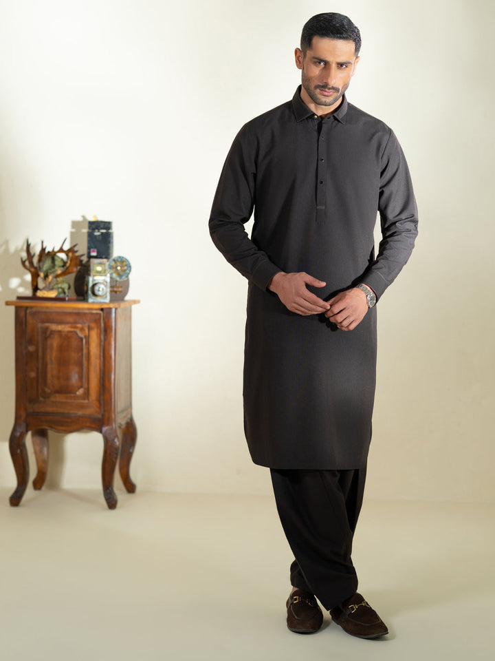 Dark Brown Kameez Shalwar - ALWA-KS-582