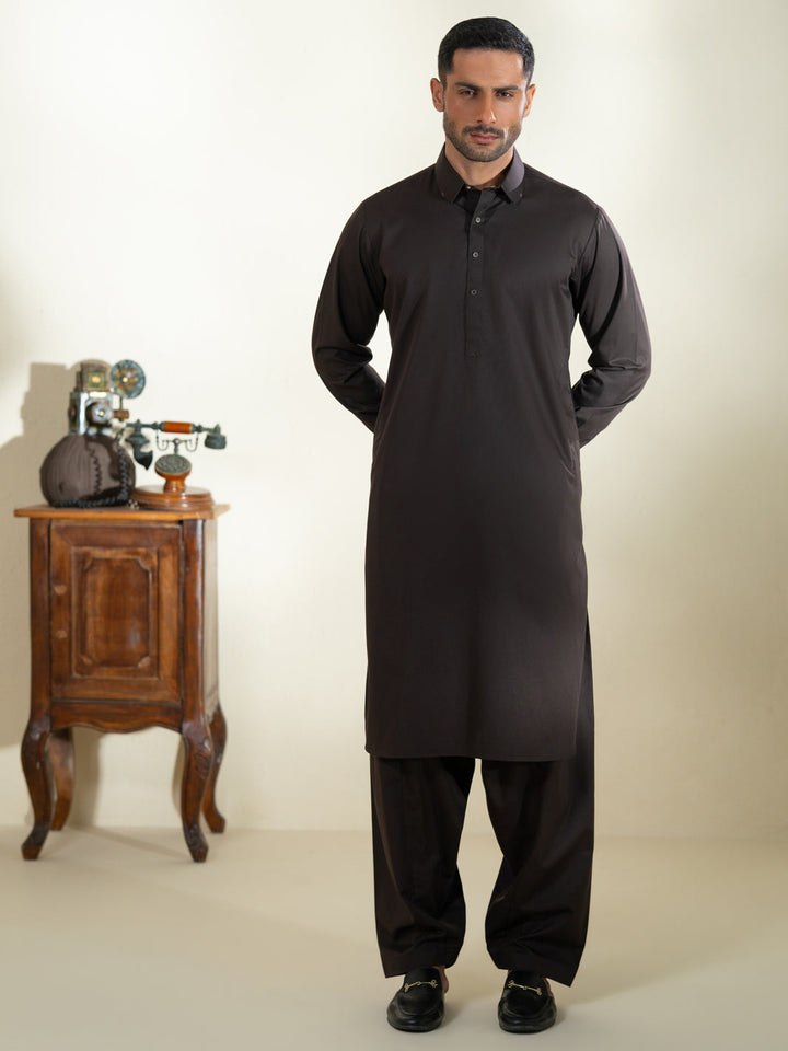Dark Brown Kameez Shalwar - ALWA-KS-594