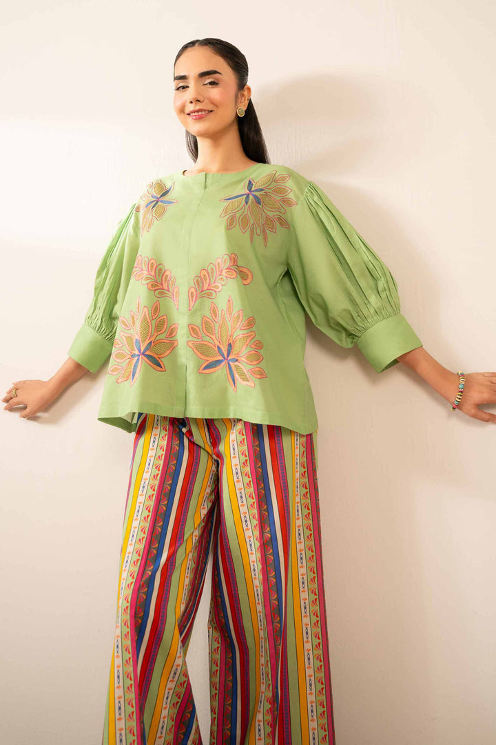 Enhance the value of the entire clothing with this printed embroidered two-piece suit from the latest pret summer collection.