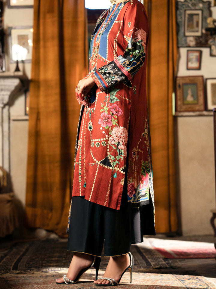 Cotton Silk Digital Printed Shirt With Handwork: 2.25 Meters