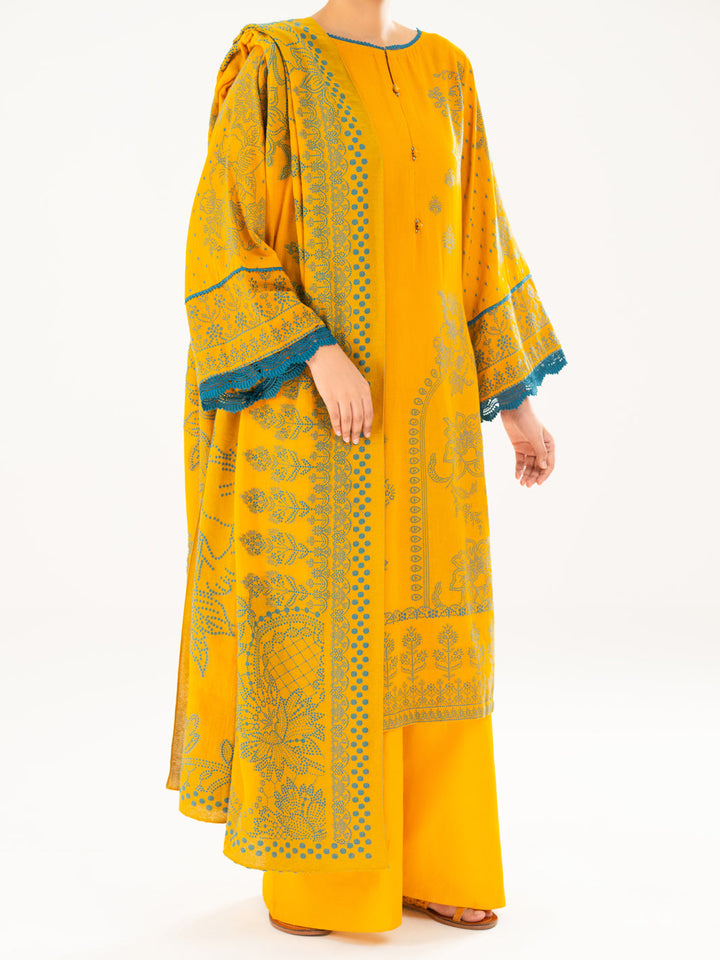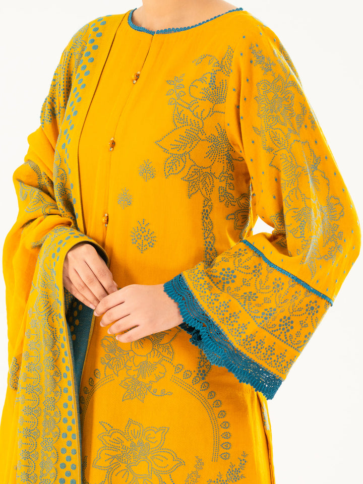 Yellow Jacquard 3Pc Stitched - AWP-3PS-749