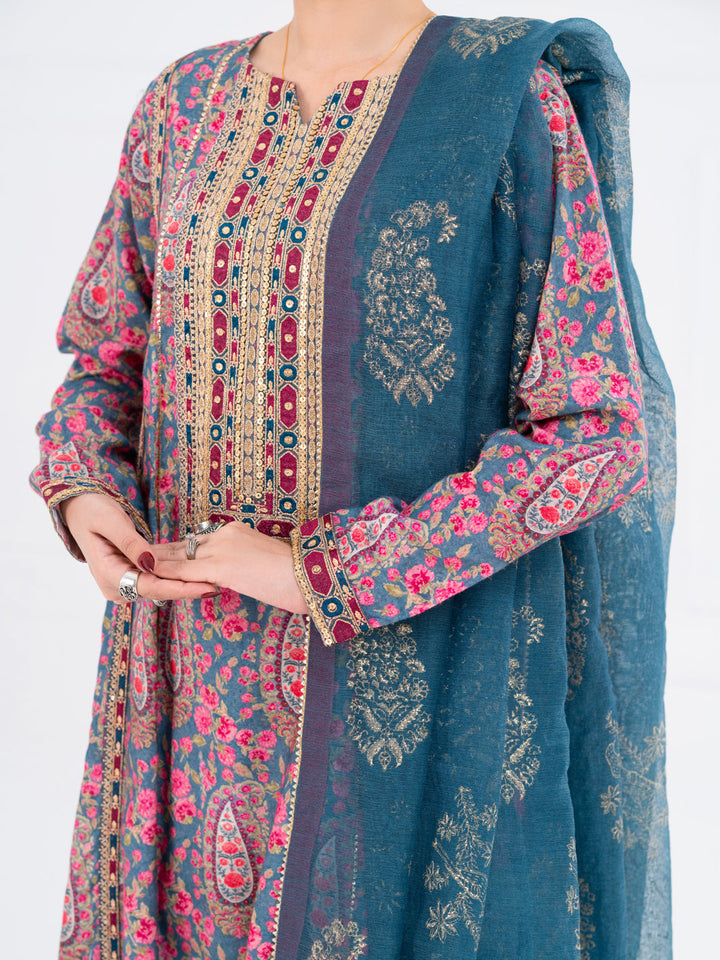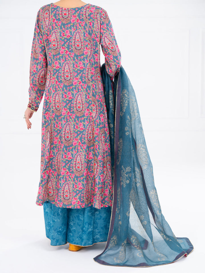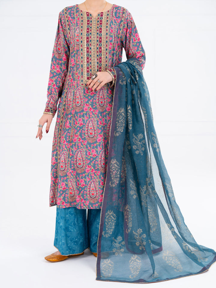 Teal Poly-Raw Silk 3Pc Stitched - AWP-3PS-756
