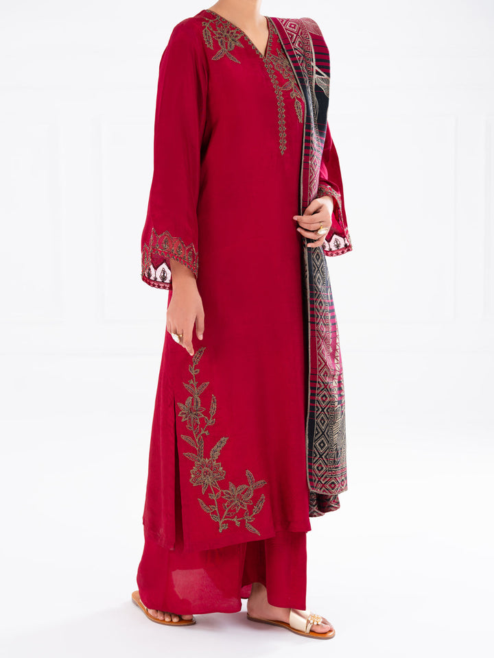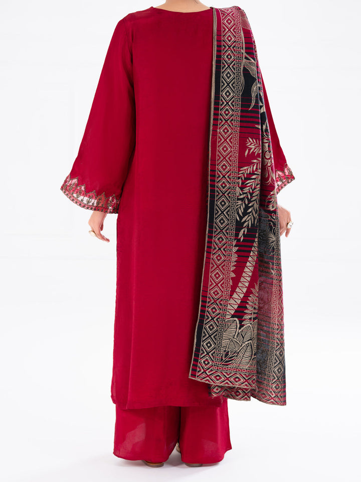 Red Taffeta Silk 3Pc Unstitched - AWP-3PS-778