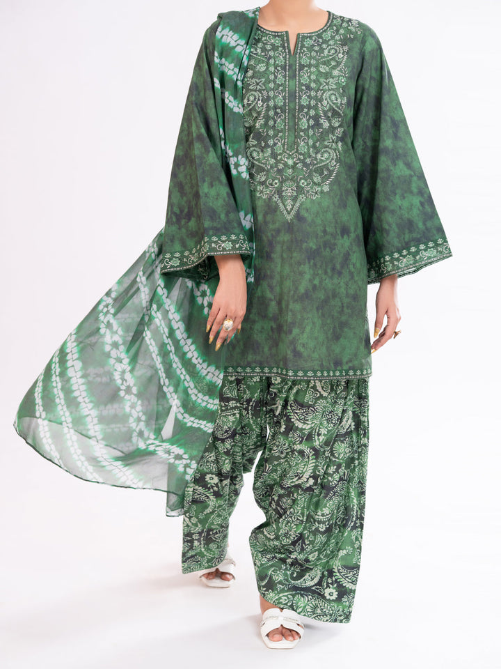 Green Cambric 3Pc Stitched - AWP-3PS-887