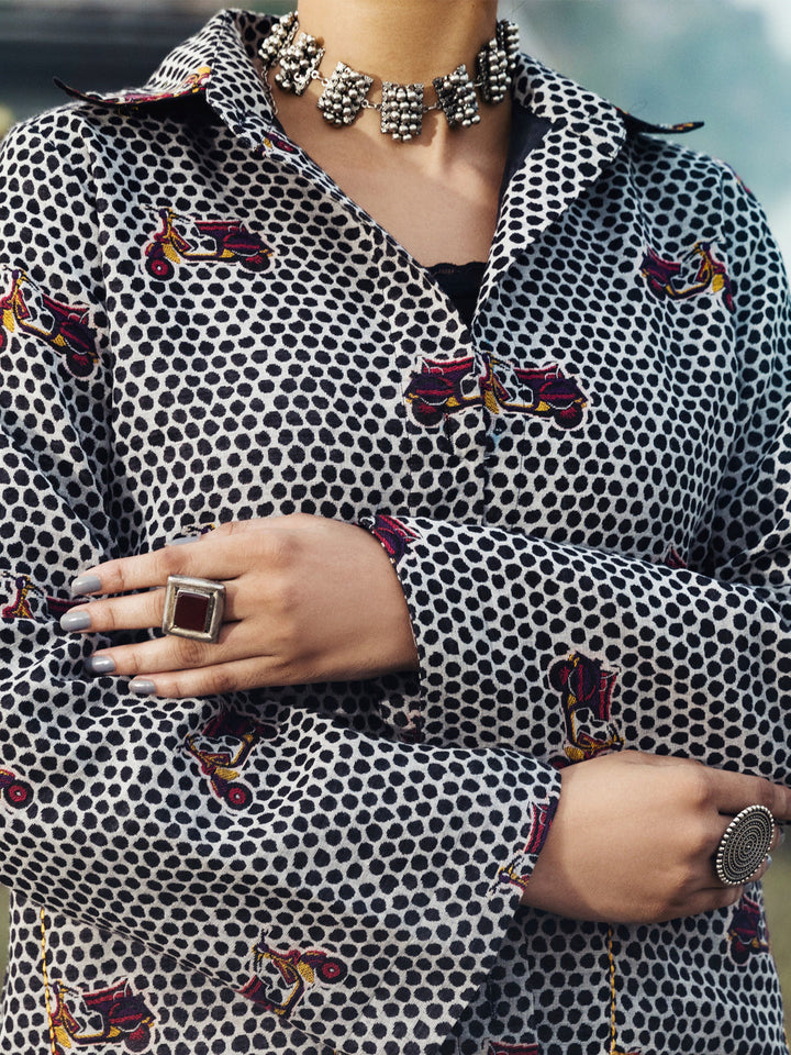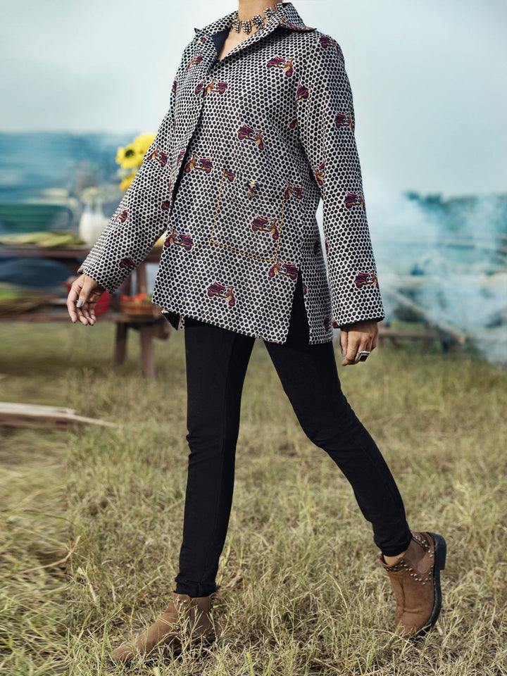 Yarn-Dyed Front Open Jacket With Pocket Detail.