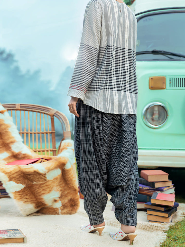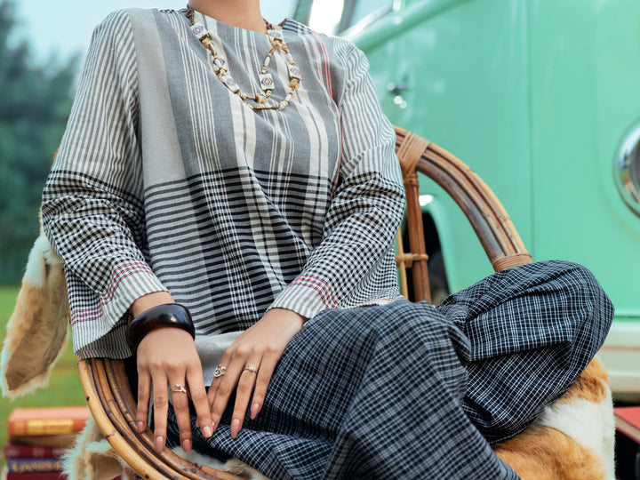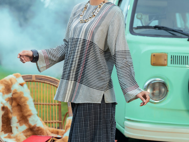 Short Length Yarn-Dyed Shirt With Stripes Overall Having Details Of Pink Hint In Front And Sleeves.