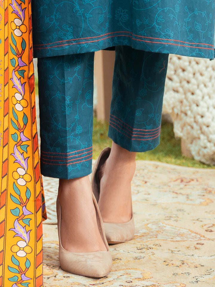 Cambric Cigarette Pants With Stitching Details On Bottom.
