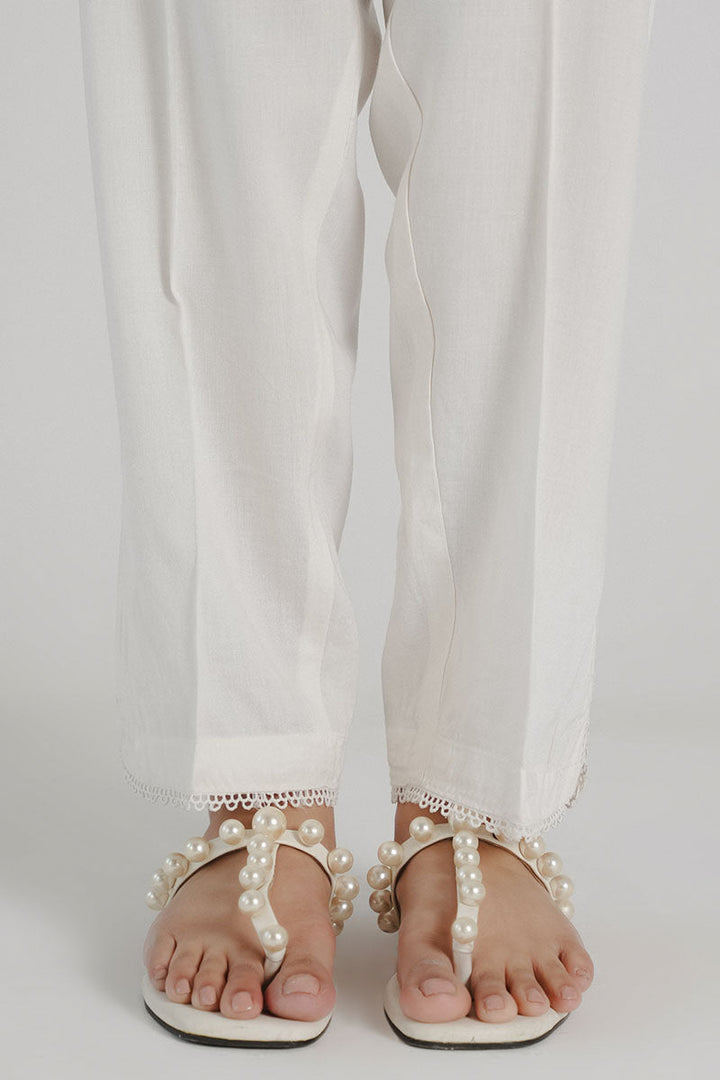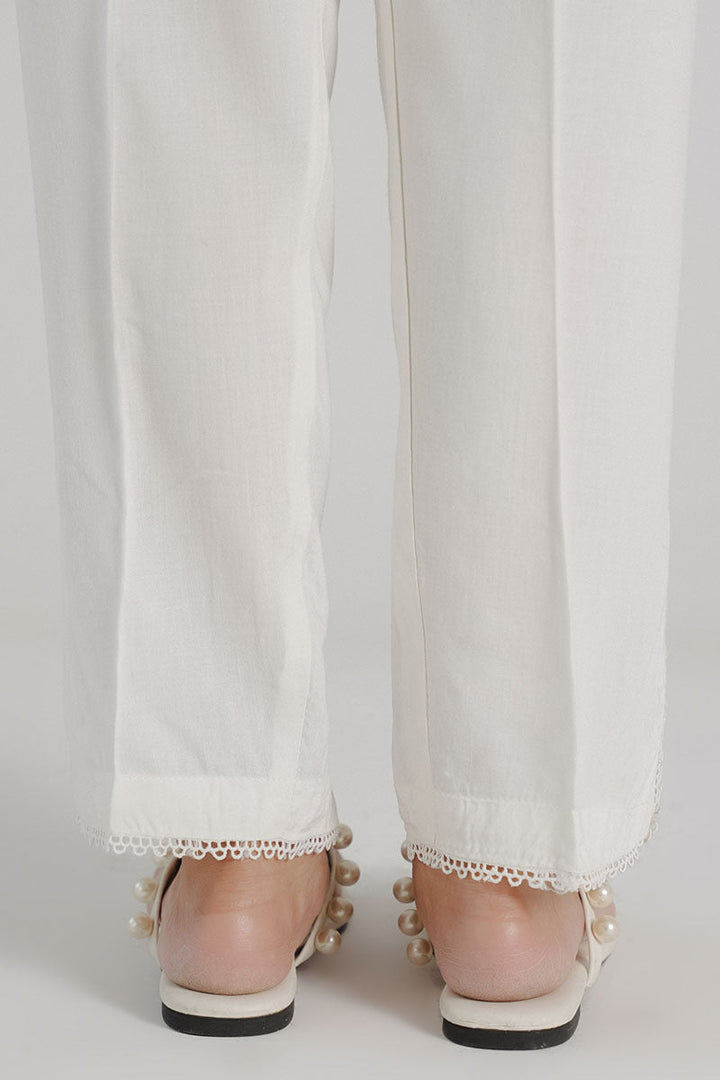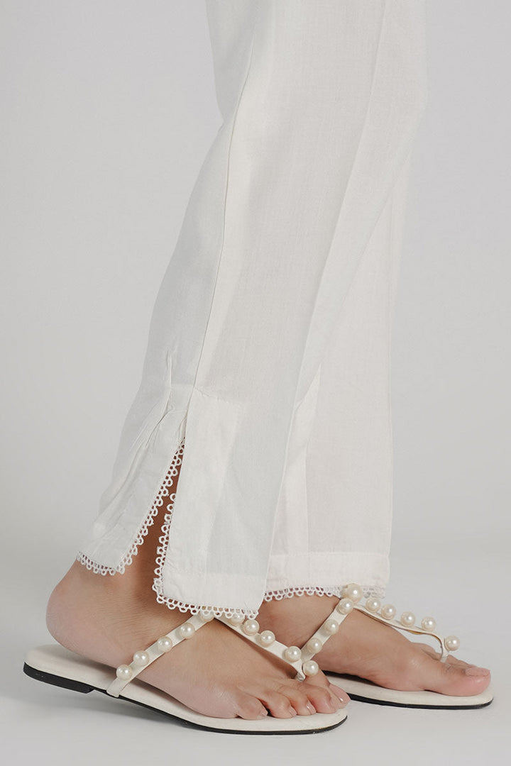 PLAIN DYED WITH LACE FINISH STRAIGHT FITTED LINEN PANTS