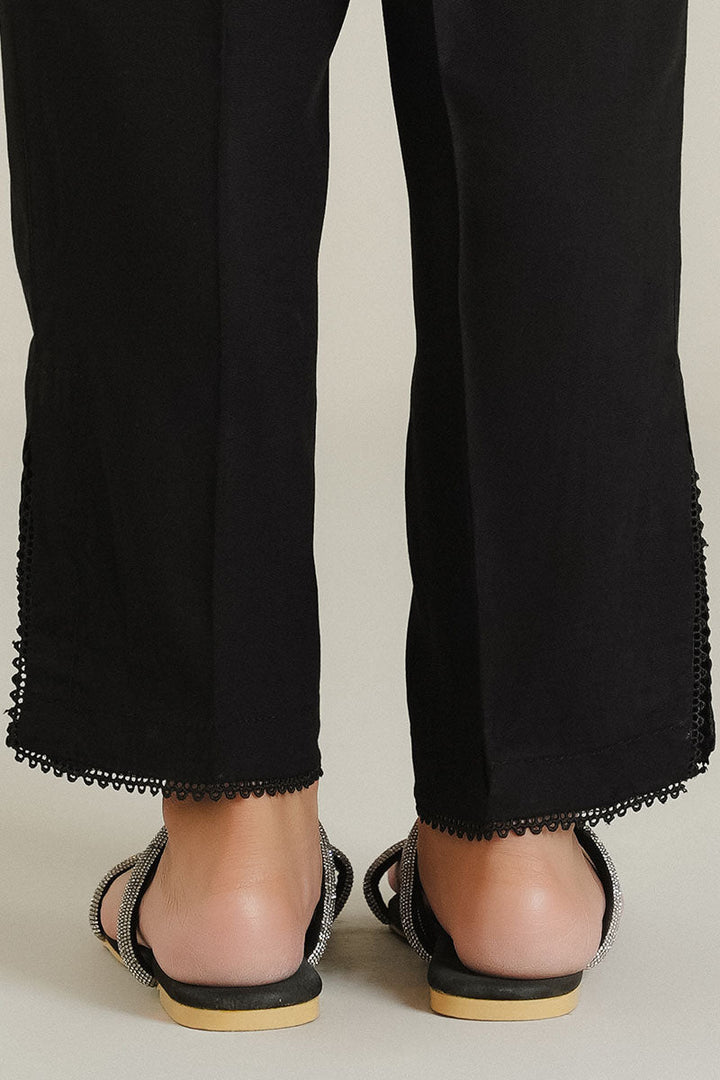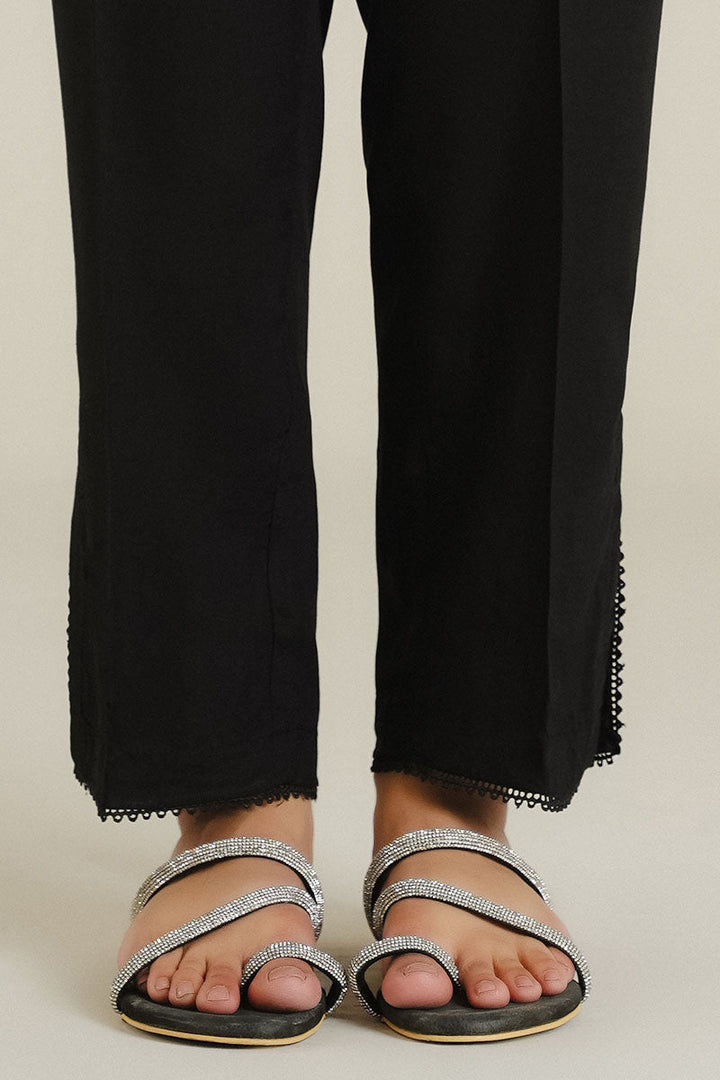 PLAIN DYED WITH LACE FINISH STRAIGHT FITTED LINEN PANTS