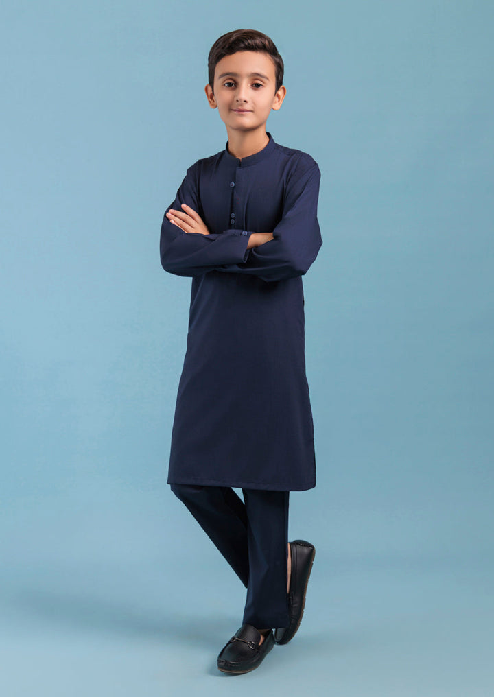 Navy Blue-Blended-Kurta Trouser - (B25KP2010)