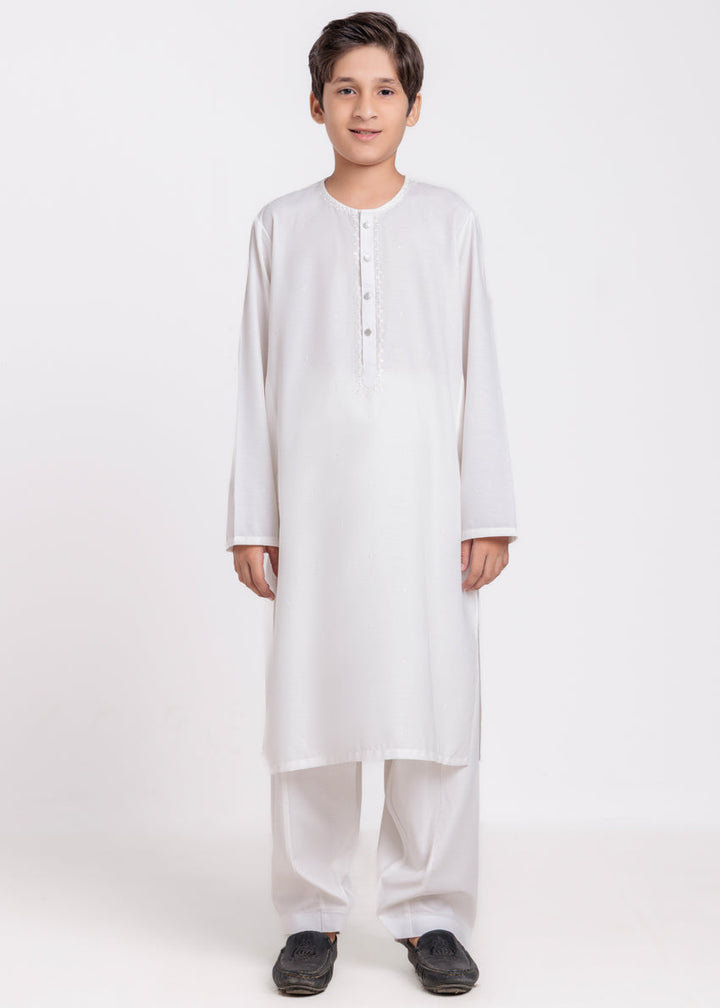 O-White-Blended-Shalwar Suit - (B25SS2031)