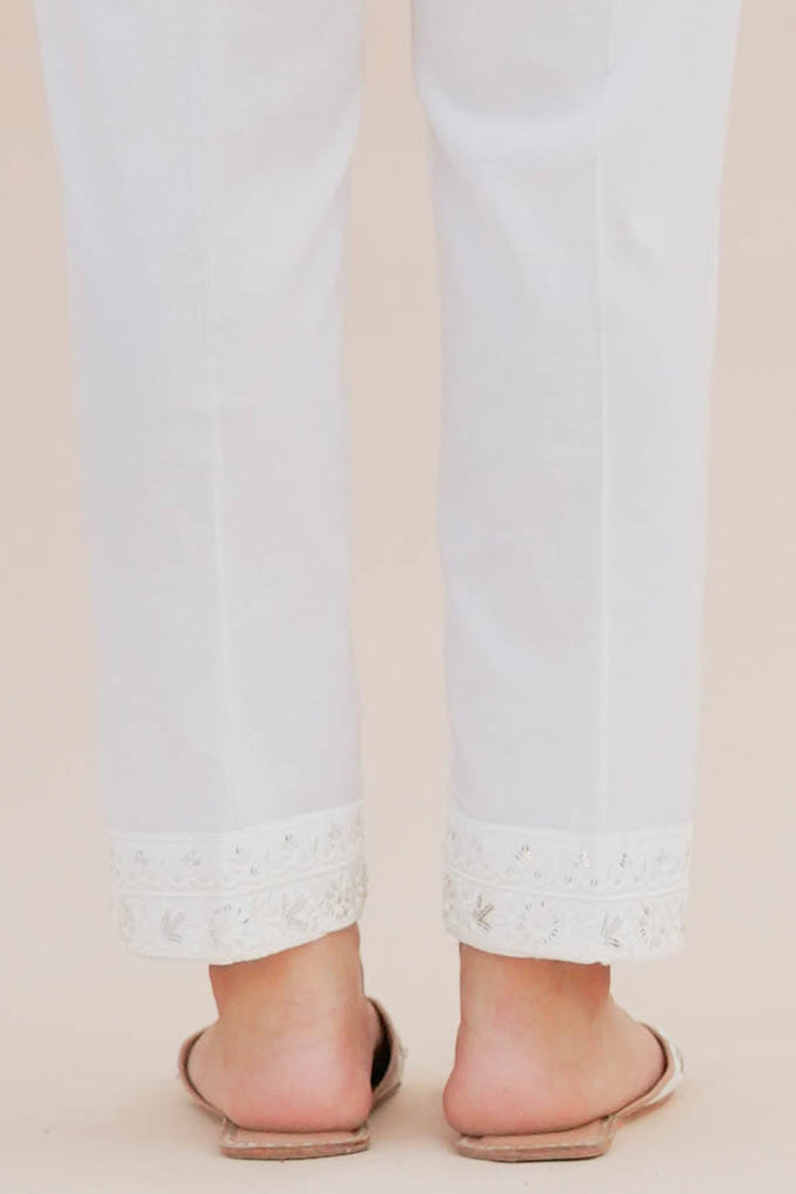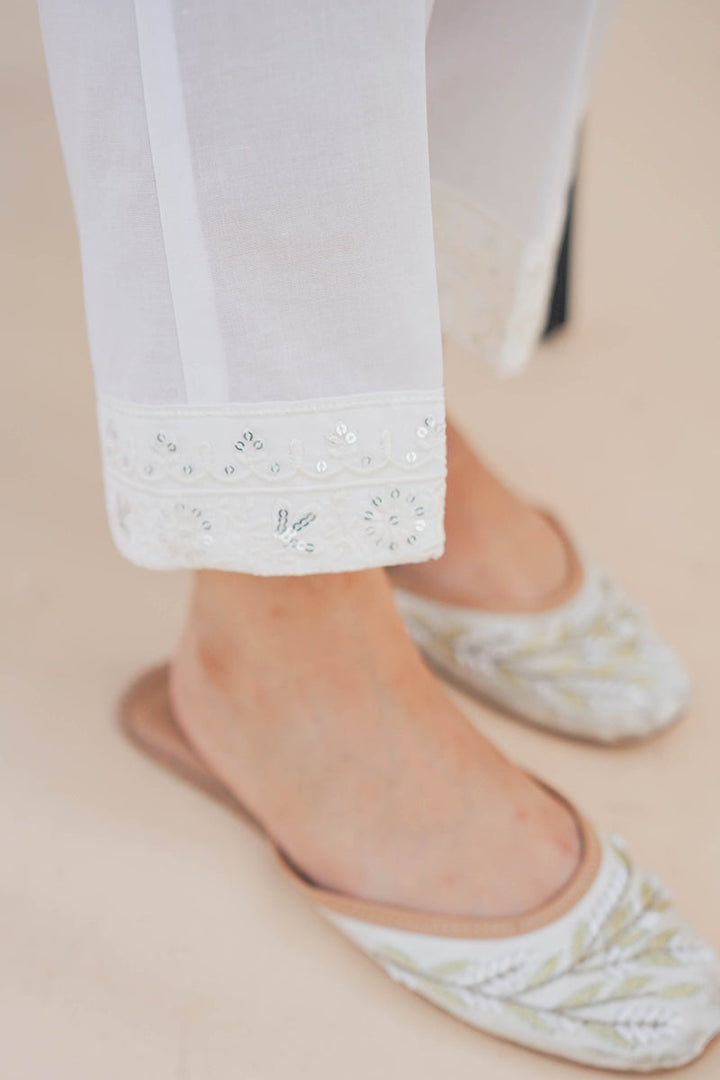 CAMBRIC EMBROIDERED STRAIGHT FITTED PANTS
