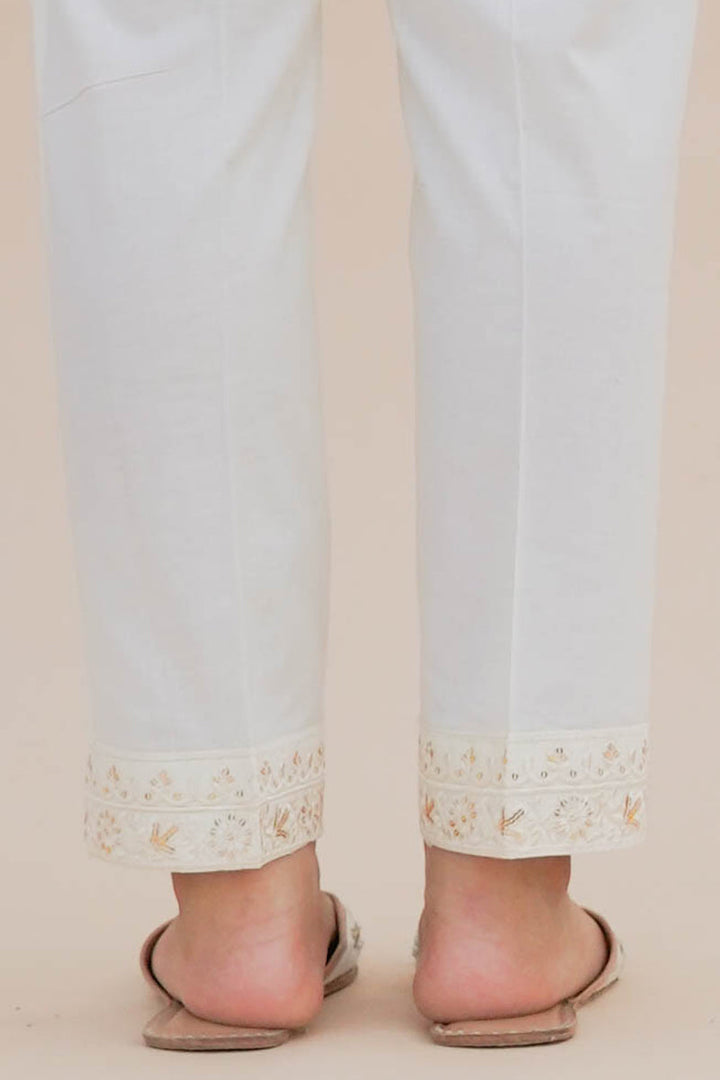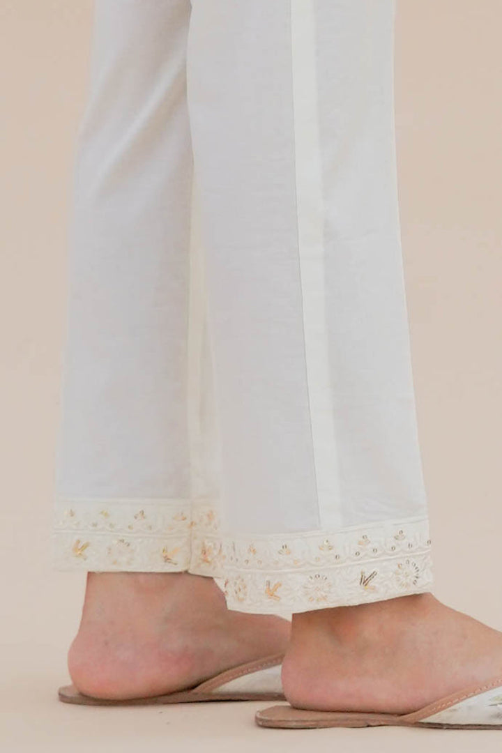 CAMBRIC EMBROIDERED STRAIGHT FITTED PANTS