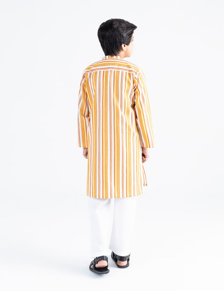 Classic lining kurta is designed in basic stitching detail. Paired with white shalwar or trouser. Must have this for upcomig festive season.