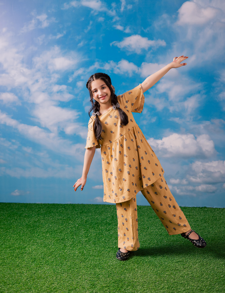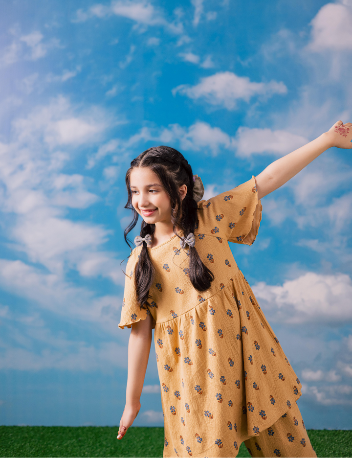 Fresh, fun, and full of charm, this 2-piece allover floral printed suit is perfect for sunny days and stylish outings! The set includes a beautifully printed floral top with sweet design details, paired with matching floral trousers for a coordinated, playful look. Made from lightweight, breathable fabric, it ensures all-day comfort and freedom to move. Ideal for picnics, playdates, or casual days out—this floral set is a must-have in her warm-weather wardrobe!