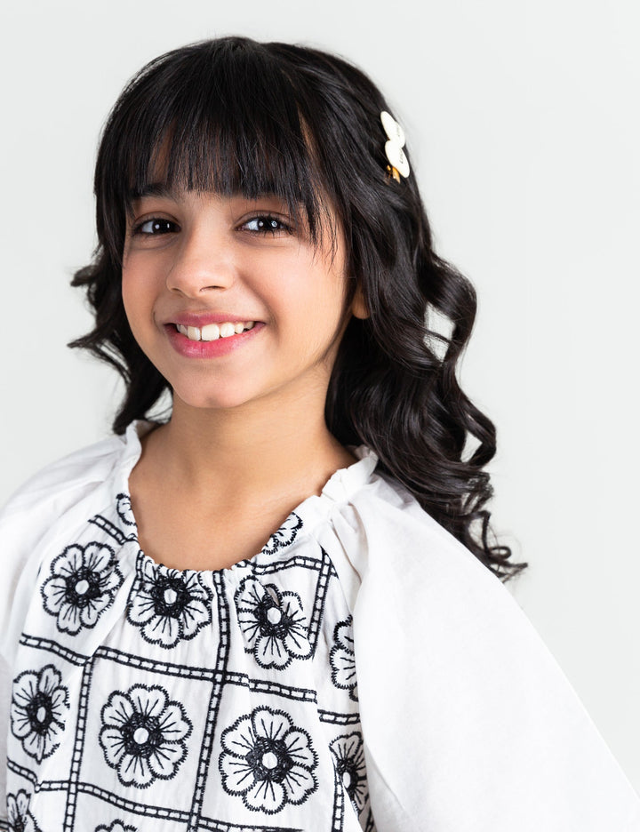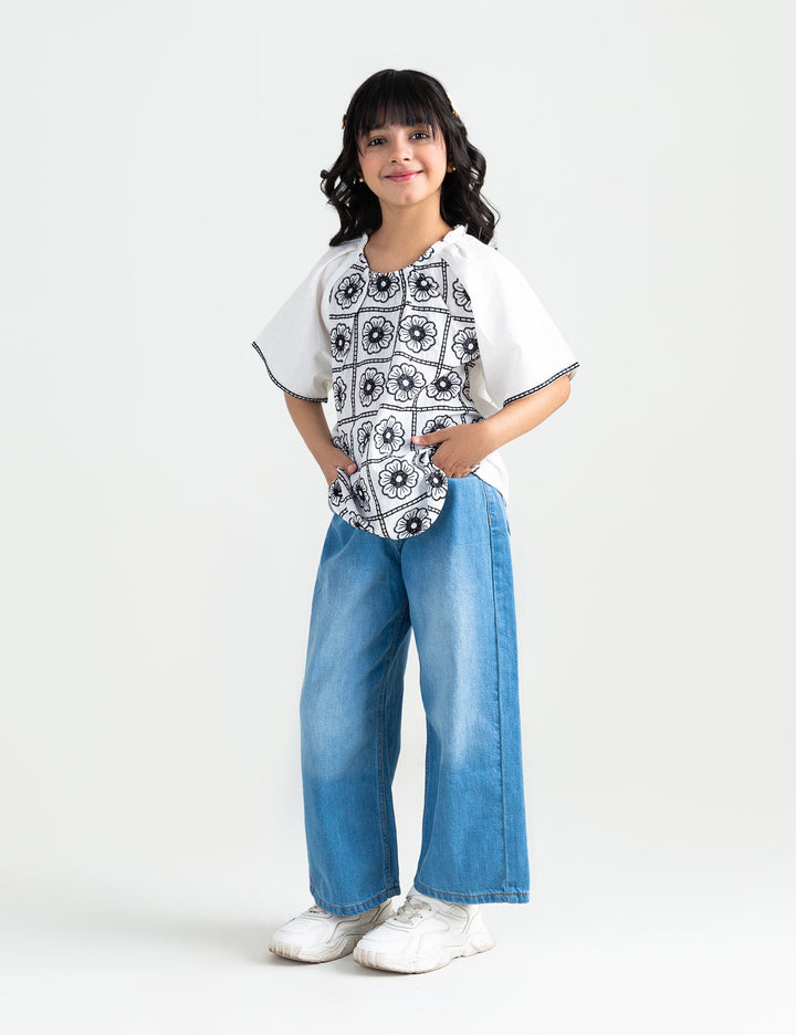Bring charm and elegance to your girl's wardrobe with this beautiful Floral Embroidered Top. Delicately designed with intricate floral embroidery, this top adds a touch of sweetness and style to any outfit. Made from soft, breathable fabric, it offers all-day comfort while the fine details make it perfect for both casual and dressy occasions.