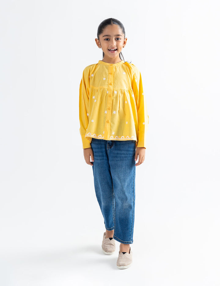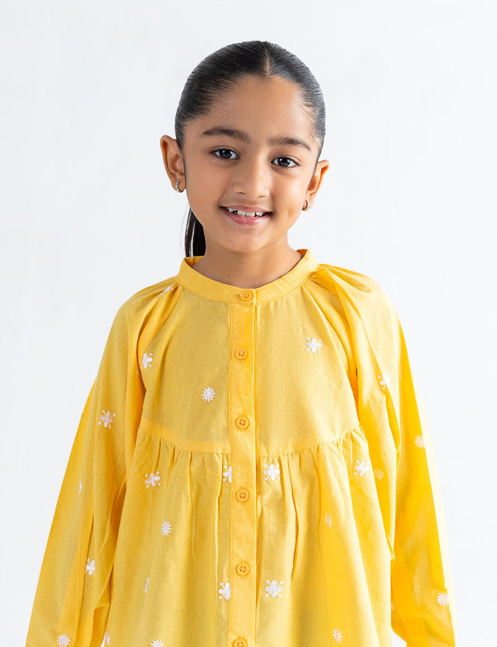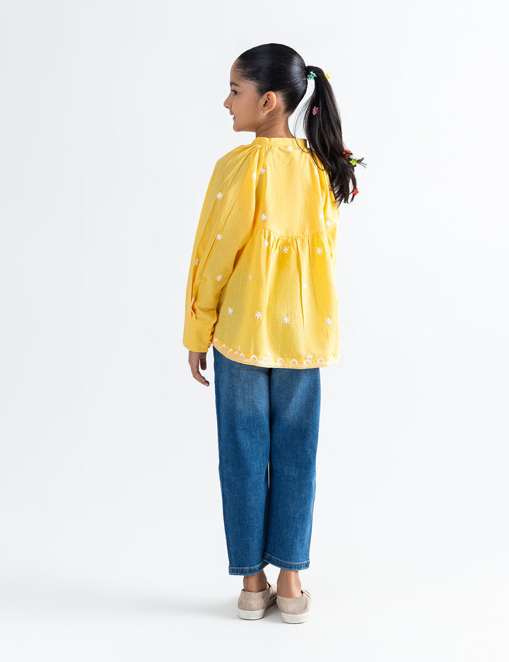 Add a touch of elegance to your girl's wardrobe with this floral embroidered top, crafted for both comfort and style. Featuring beautifully stitched floral patterns across the front, this top blends charm and detail effortlessly. The lightweight fabric and delicate sleeves make it a perfect choice for warm-weather wear or layering in cooler months.