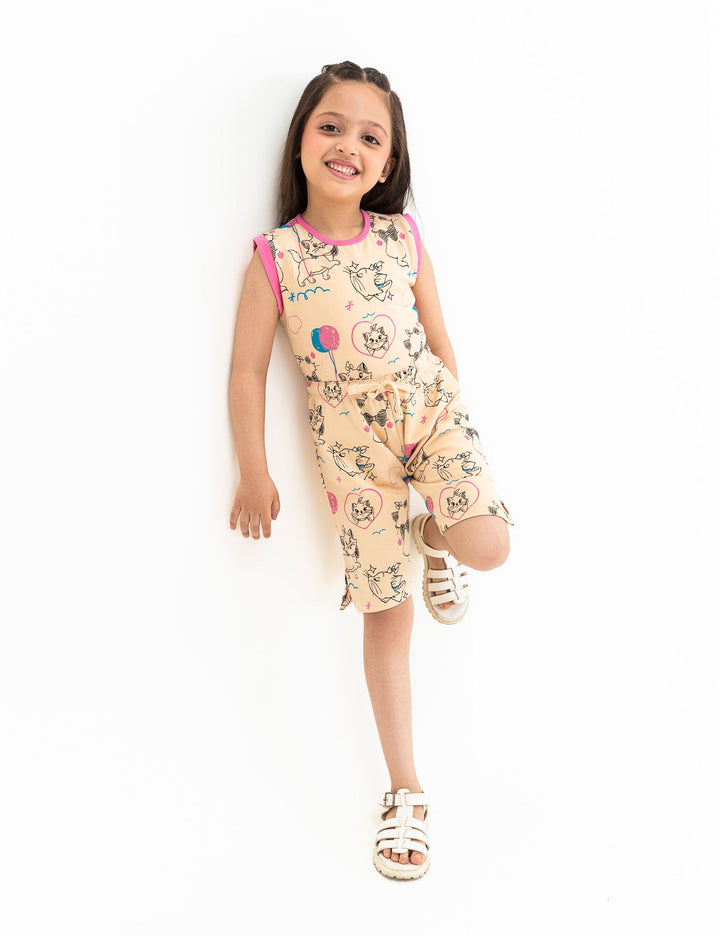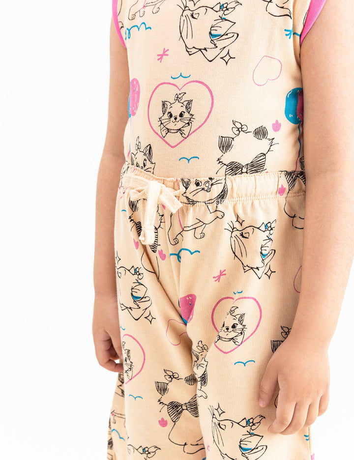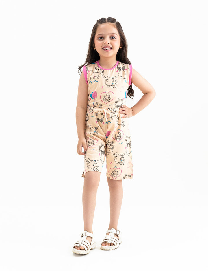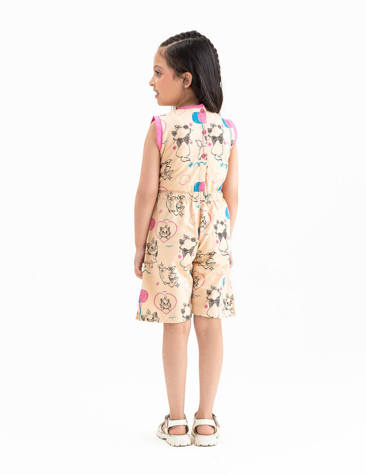 Stay stylish and comfortable in this sleeveless knee-length jumpsuit, featuring a drawcord at the waist for a flattering fit. Perfect for a chic and playful look.