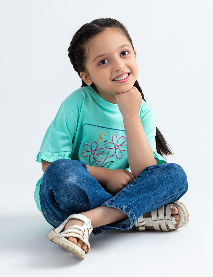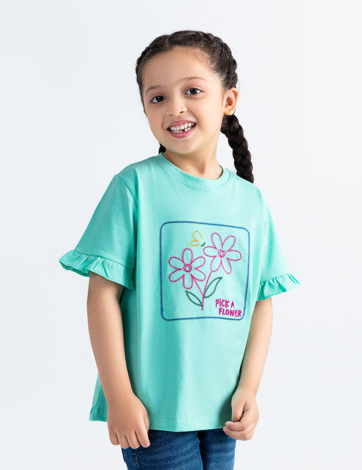 Add a sweet and delicate touch to her everyday look with this floral embroidered t-shirt for little girls! Featuring beautifully stitched floral detailing on soft, breathable fabric, this tee blends comfort with charm. The classic crew neck and short sleeves make it perfect for school, playdates, or outings. Easy to pair with jeans, skirts, or leggings—this t-shirt brings effortless style to her wardrobe!