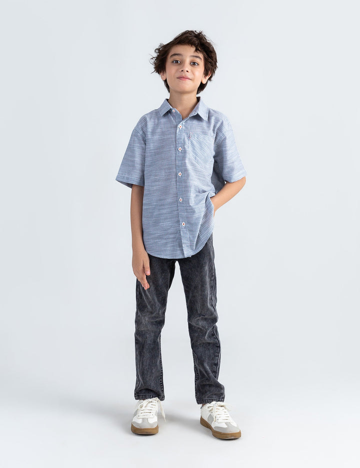 Classic and comfortable, this checkered short sleeve shirt is a stylish pick for any occasion. Featuring a fine grid check pattern in subtle tones, it comes with a smart button-down front, chest pocket, and a neatly structured collar for a clean, polished look. Made from soft, breathable fabric, it’s ideal for school days, casual outings, or family gatherings. Pair it with jeans or chinos for a sharp, everyday outfit.
