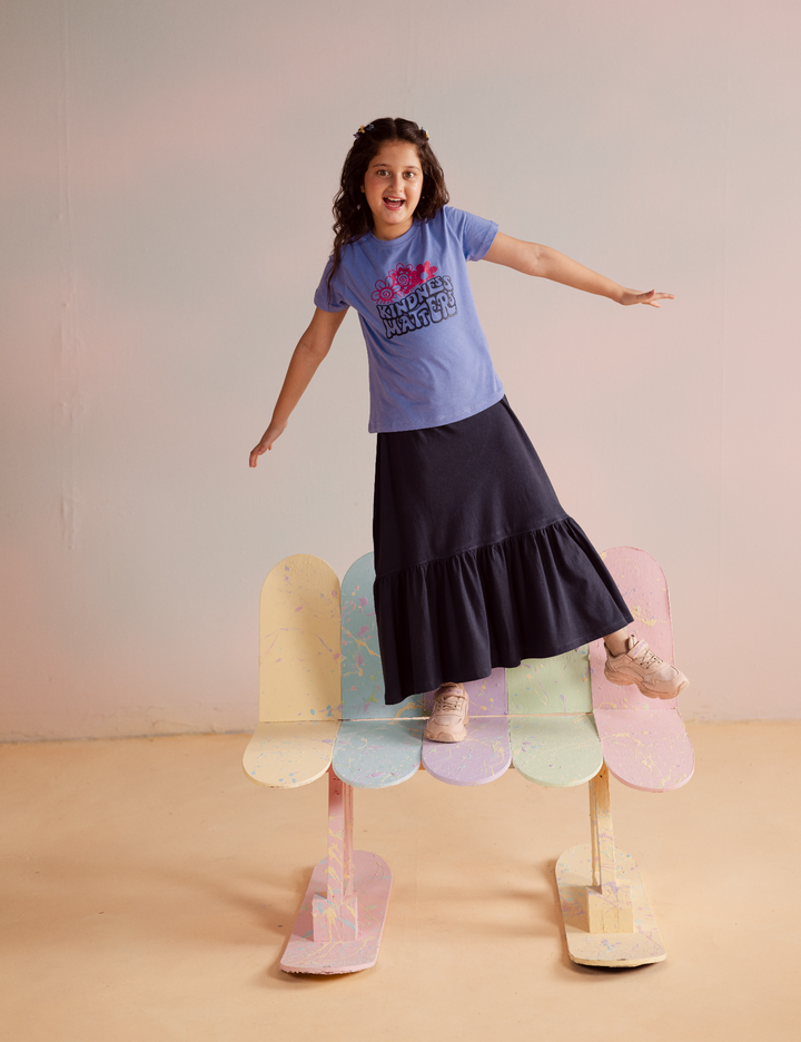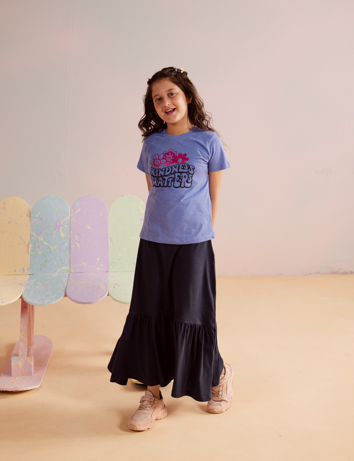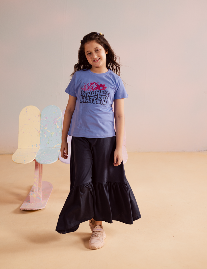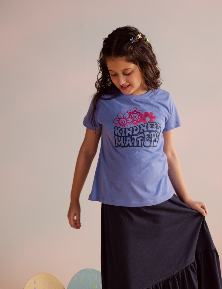 Let your little one shine with positivity in this 2 Piece Kindness Matters Printed Suit for Girls. Featuring a cheerful printed top with an inspiring "Kindness Matters" message and matching bottoms, this outfit combines comfort and style. Made from soft, breathable fabric, it’s perfect for school, playdates, or casual outings while spreading a beautiful message of kindness.