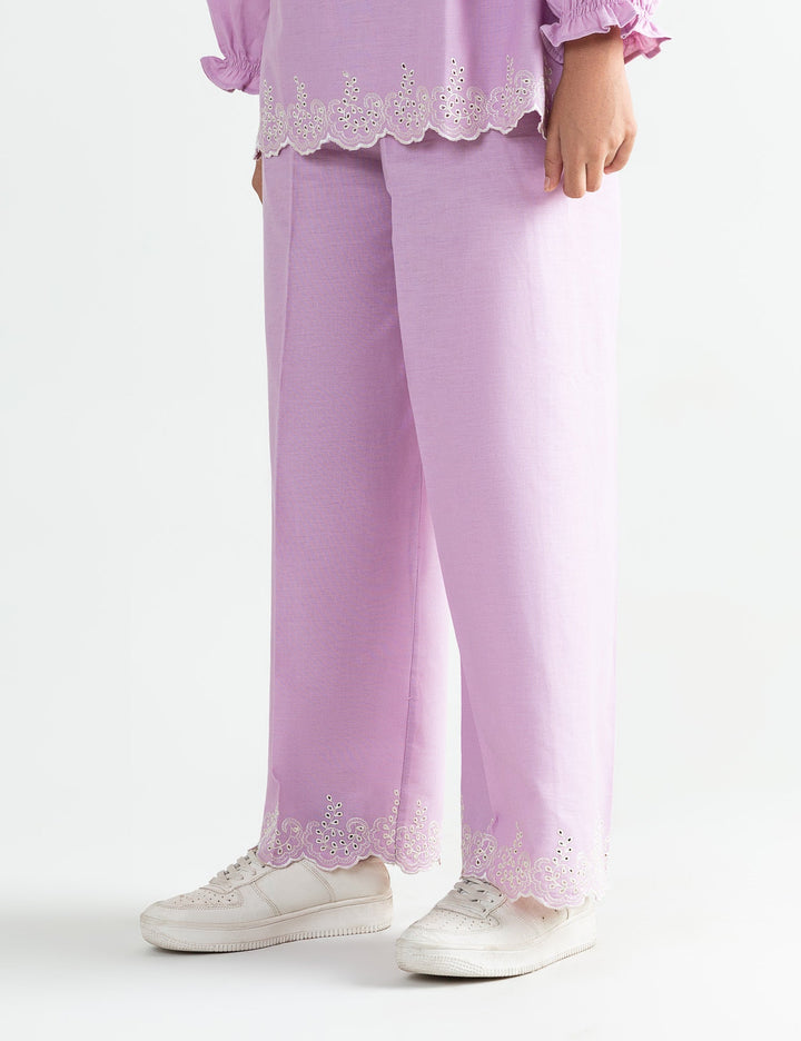 Elevate her everyday look with these Stylised Embroidered Trousers for Girls. Featuring delicate embroidery details and a chic design, these trousers blend comfort with style. Crafted from soft, breathable fabric, they are perfect for casual outings, family gatherings, or special occasions. A versatile wardrobe essential that pairs beautifully with tops and tunics.