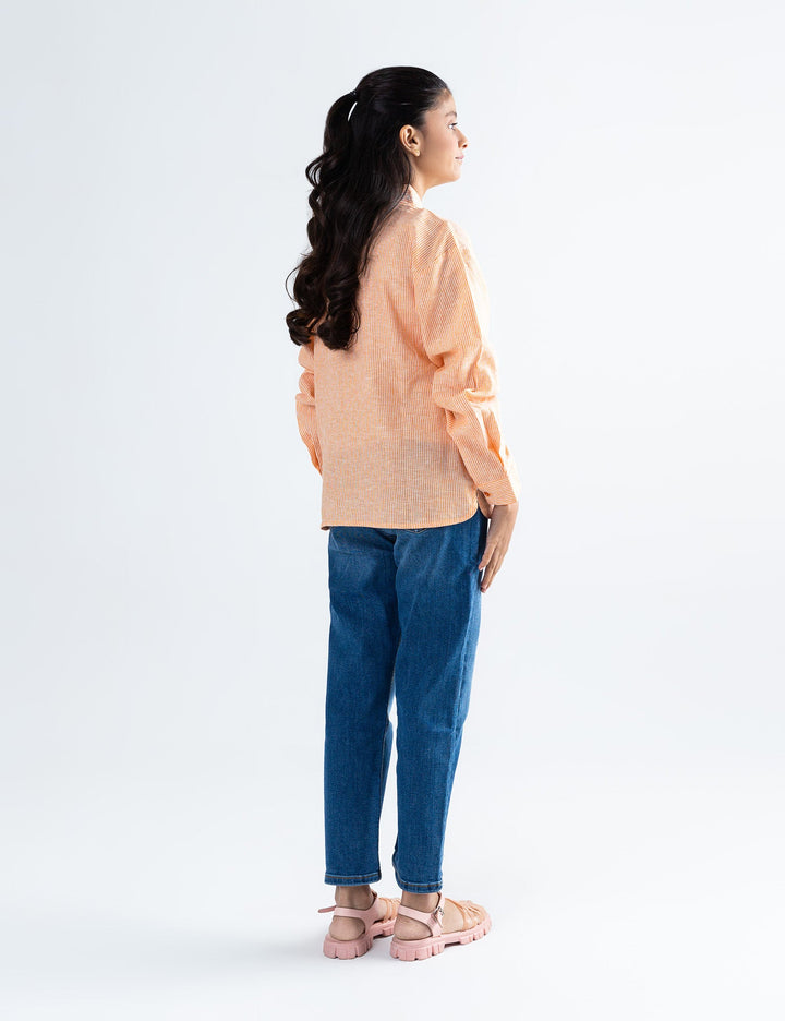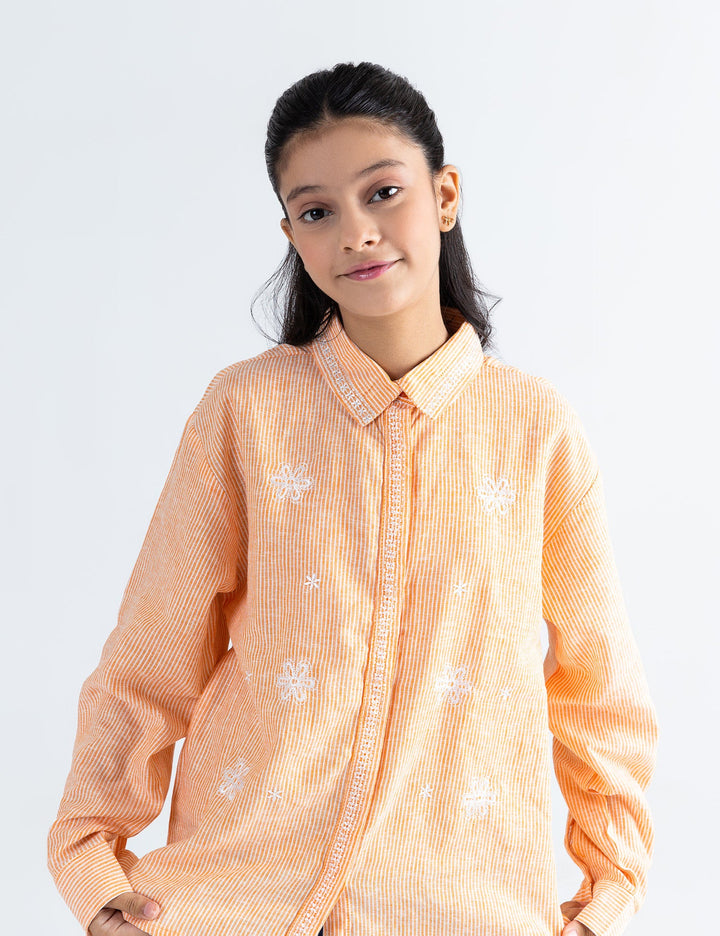 Add timeless charm to her wardrobe with this floral embroidered button-down top for girls. Designed with delicate floral embroidery along the front, this top features a classic button-down closure, a smart collar, long sleeves. Made from soft, breathable fabric, it’s perfect for casual days, outings, or festive gatherings. Pair it with jeans, skirts, or trousers for a graceful and polished look.