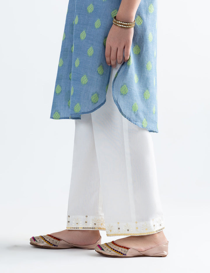With an elastic waistband so easy to pull on go. This basic trouser with embroidery detail should be part of your essential wardrobe for this upcoming summer season.
