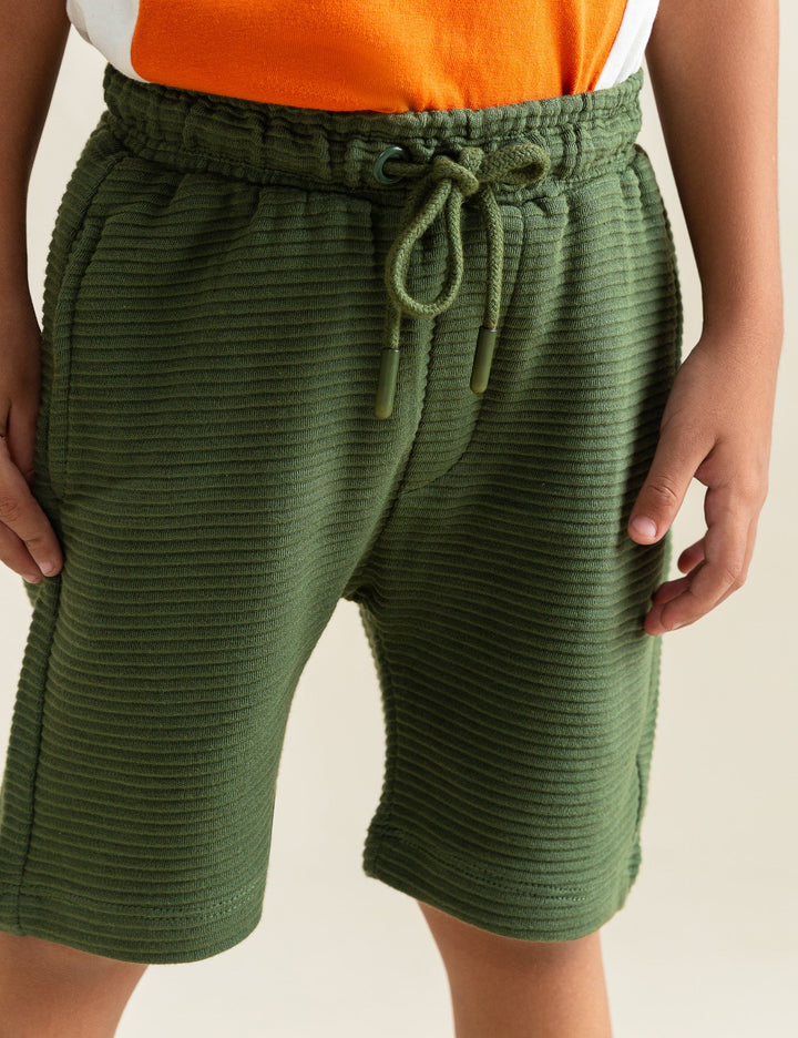 Keep him comfy and ready for play with these soft rib knit shorts. Crafted from breathable, stretchable fabric, they offer all-day comfort and freedom of movement. The elastic waistband ensures a secure yet gentle fit, while the simple design makes them easy to pair with any top. Perfect for casual days, outdoor fun, or lounging at home.