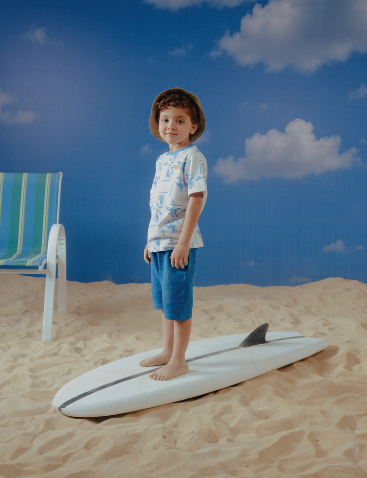 Let his creativity shine in this 2-piece "Use Your Imagination" printed suit! The set features a white crew neck t-shirt with a vibrant blue abstract doodle print and the inspiring slogan "Use Your Imagination", paired with matching blue shorts with a comfy drawstring waist. Made from soft, breathable fabric, this outfit is perfect for playdates, creative time, or everyday fun. Stylish, comfortable, and full of imagination—just like him!