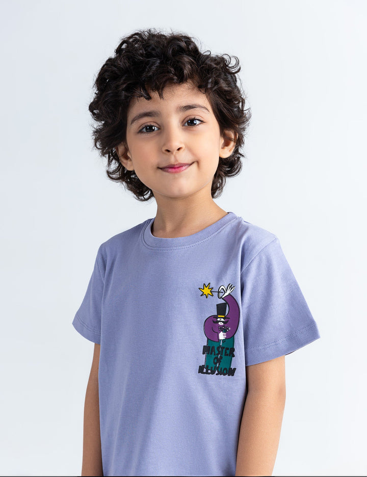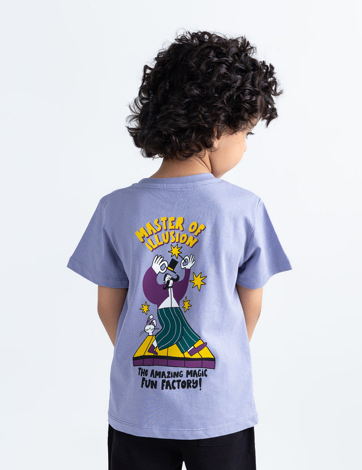 Add a fun twist to his wardrobe with this "Master of Illusion" printed t-shirt, perfect for curious minds and playful spirits! Featuring a creative and eye-catching graphic design, this tee brings a cool, mysterious vibe to any casual look. Made from soft, breathable fabric, it ensures all-day comfort for school, play, or exploring. With a classic crew neckline and easy fit, it pairs effortlessly with jeans, joggers, or shorts. A standout tee for a standout kid!