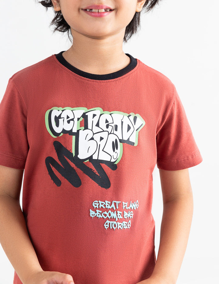 Add a playful and confident vibe to his wardrobe with this "Get Ready Bro" printed t-shirt! Designed with a bold slogan print, this tee is perfect for little boys who love fun, expressive style. Made from soft, breathable fabric, it keeps him comfortable through all his adventures—whether he's at play, preschool, or out with family. The classic crew neck and easy fit make it a versatile piece that pairs perfectly with shorts, jeans, or joggers. A cool everyday favorite!