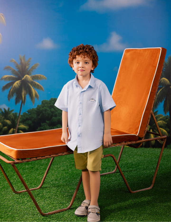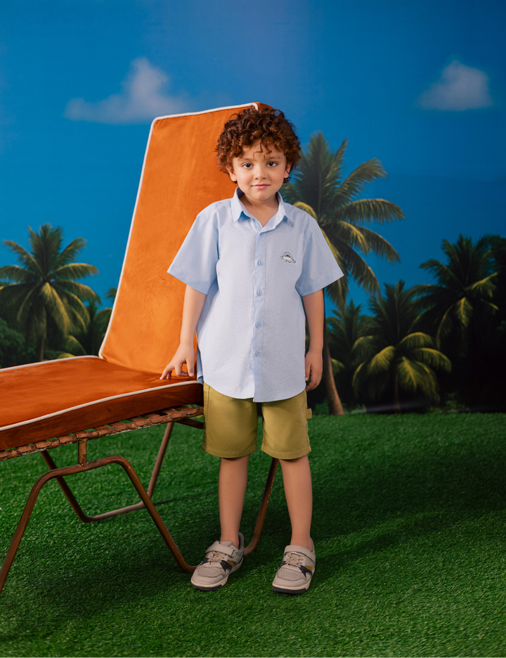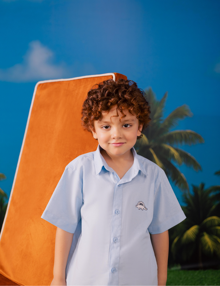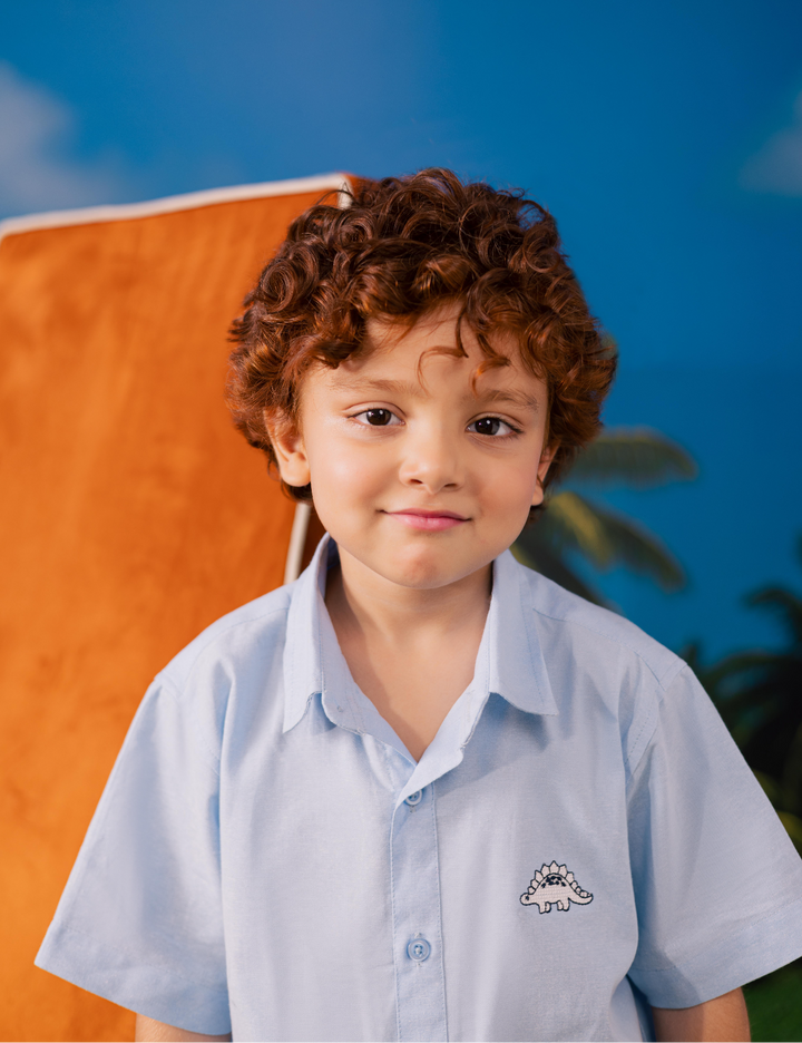 Add a roar of fun to his wardrobe with this Dino graphic shirt, perfect for little adventurers! Featuring a playful dinosaur print on soft, breathable fabric, this shirt brings together comfort and cool style. The button-down design with a classic collar gives it a smart-casual look, making it great for school, playdates, or outings. Pair it with jeans or shorts for a dino-mite outfit your little one will love!