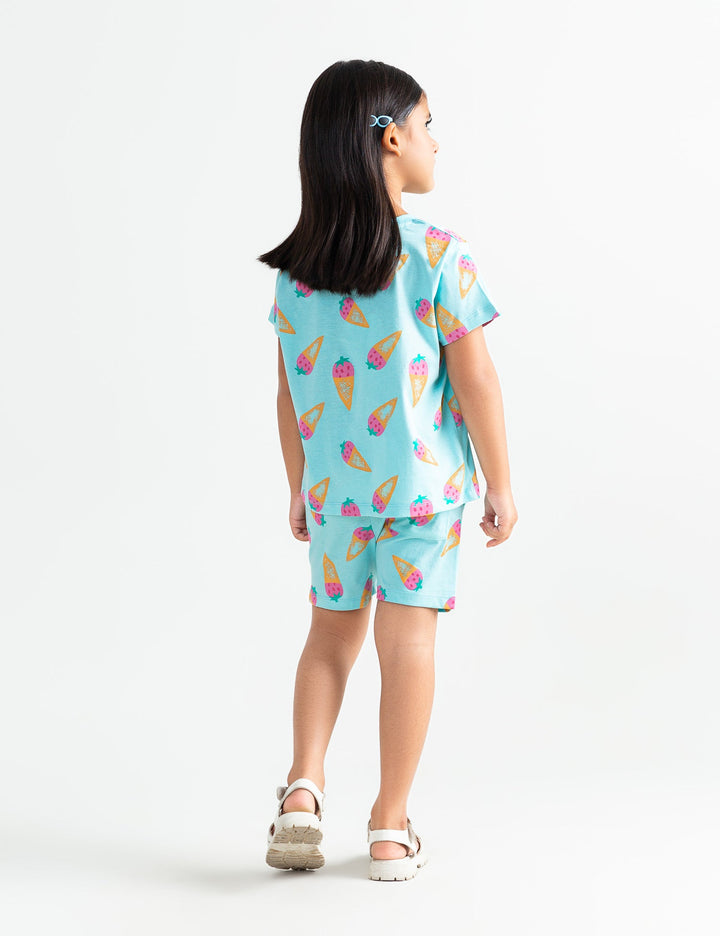 2 PIECE ALLOVER STRAWBERRY PRINTED SUIT