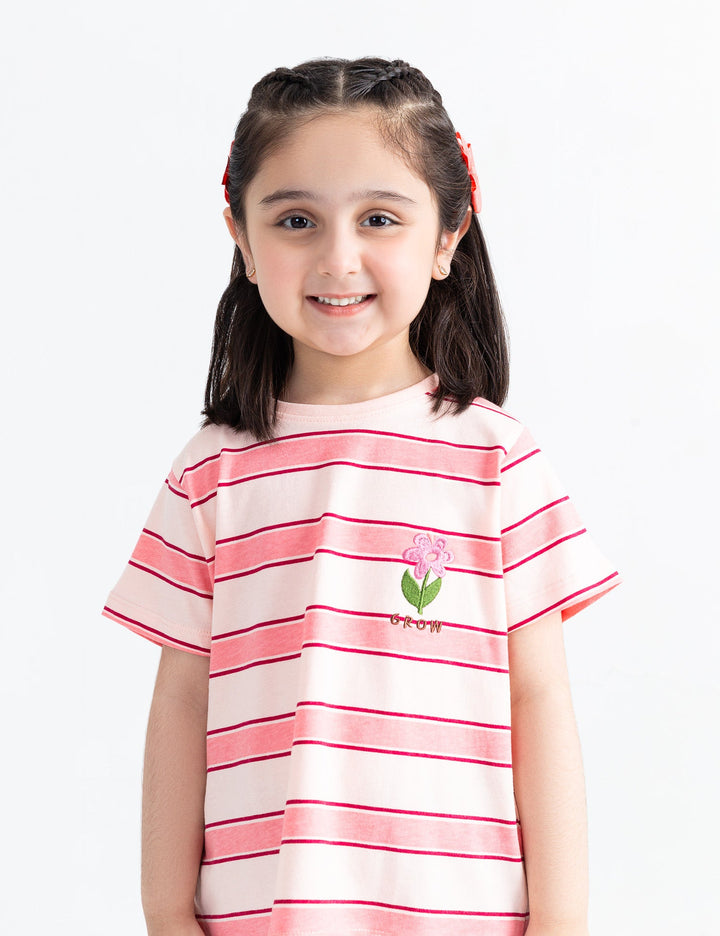 This Floral Embroidered T-Shirt for little girls adds a sweet and elegant touch to her everyday style. Made from soft and breathable fabric, it features delicate floral embroidery on the front, giving it a charming and timeless look. Designed with short sleeves and a classic fit, this tee ensures comfort while keeping her stylish. Perfect to pair with jeans, skirts, or shorts for casual outings or family gatherings.