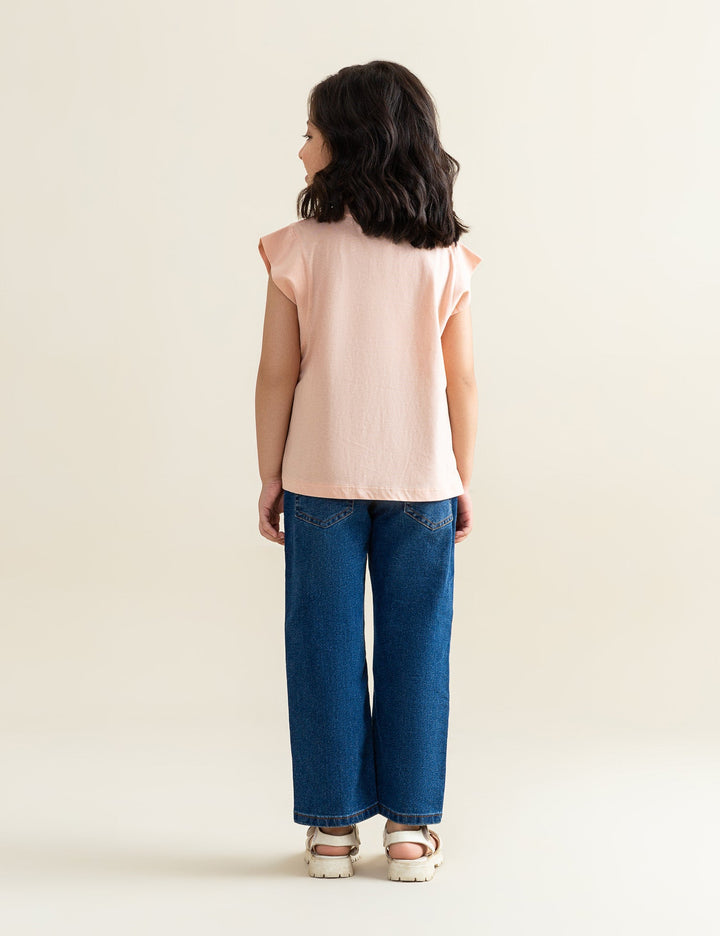 Add a pop of color and style to her casual wardrobe with this Pretty Vibes sleeveless t-shirt. Featuring a bold abstract graphic with shimmering yellow leaves and vibrant purple, green, and navy accents, this t-shirt brings a fun, artsy vibe to everyday outfits. Crafted from soft, breathable fabric, it ensures comfort for all-day wear while the round neckline and easy fit make it perfect for pairing with shorts, skirts, or jeans.