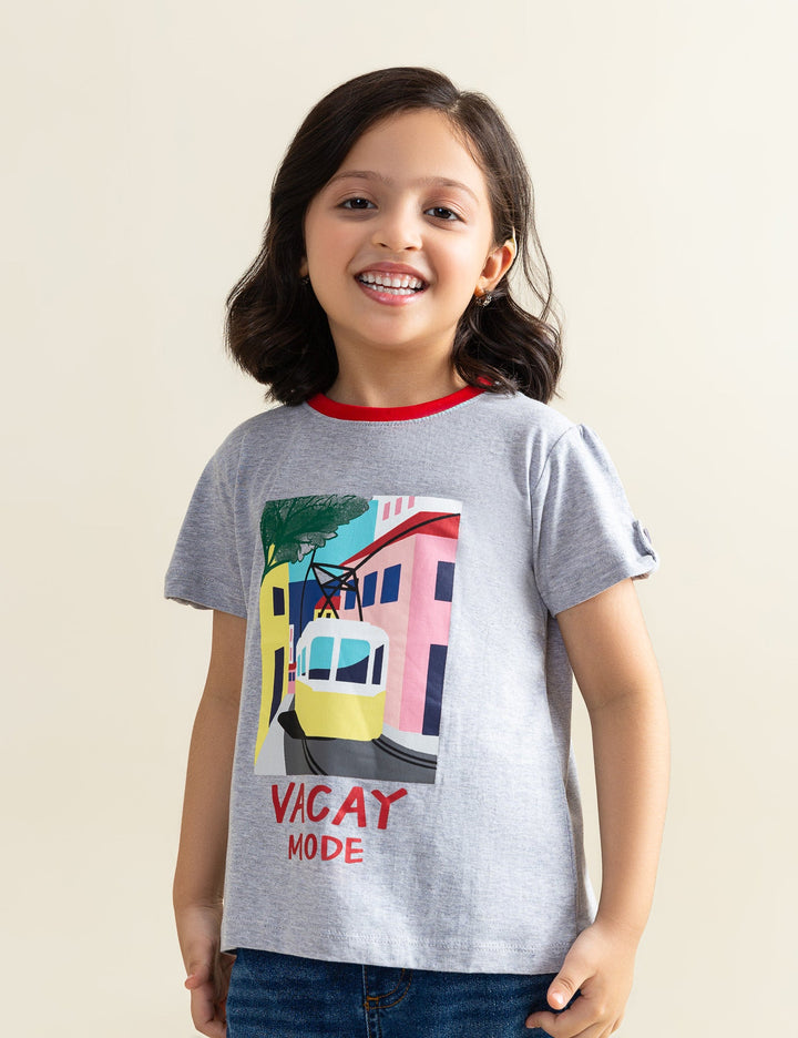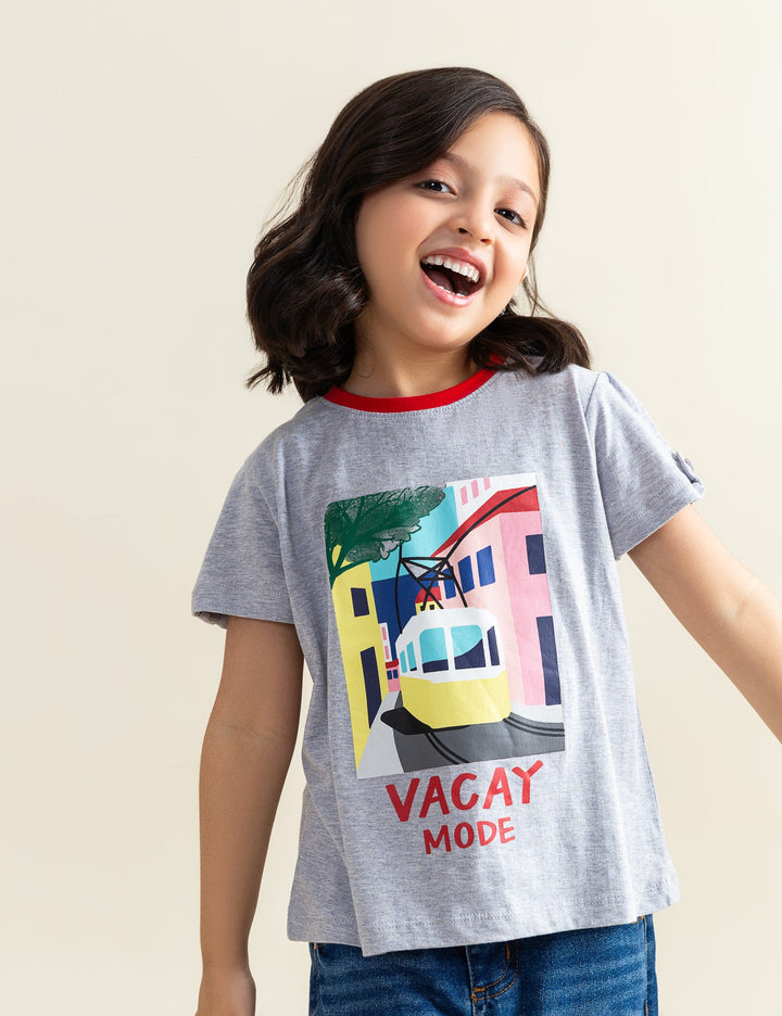 Get her ready for sunshine and smiles with this "Vacay Mode" printed t-shirt! Featuring a fun vacation-themed slogan in bold, playful lettering, this tee is perfect for beach days, road trips, or just lounging in style. Made from soft, breathable cotton, it's comfy enough for all-day adventures.
