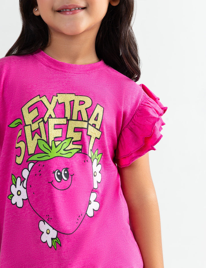 Brighten up your little one’s casual look with this Extra Sweet Printed T-Shirt for Little Girls. Designed with a fun and colorful print, it adds a cheerful touch to everyday wear. Made from soft, breathable fabric, this tee ensures comfort throughout the day—perfect for playdates, outings, or relaxed at-home wear. A sweet and stylish addition to her wardrobe!